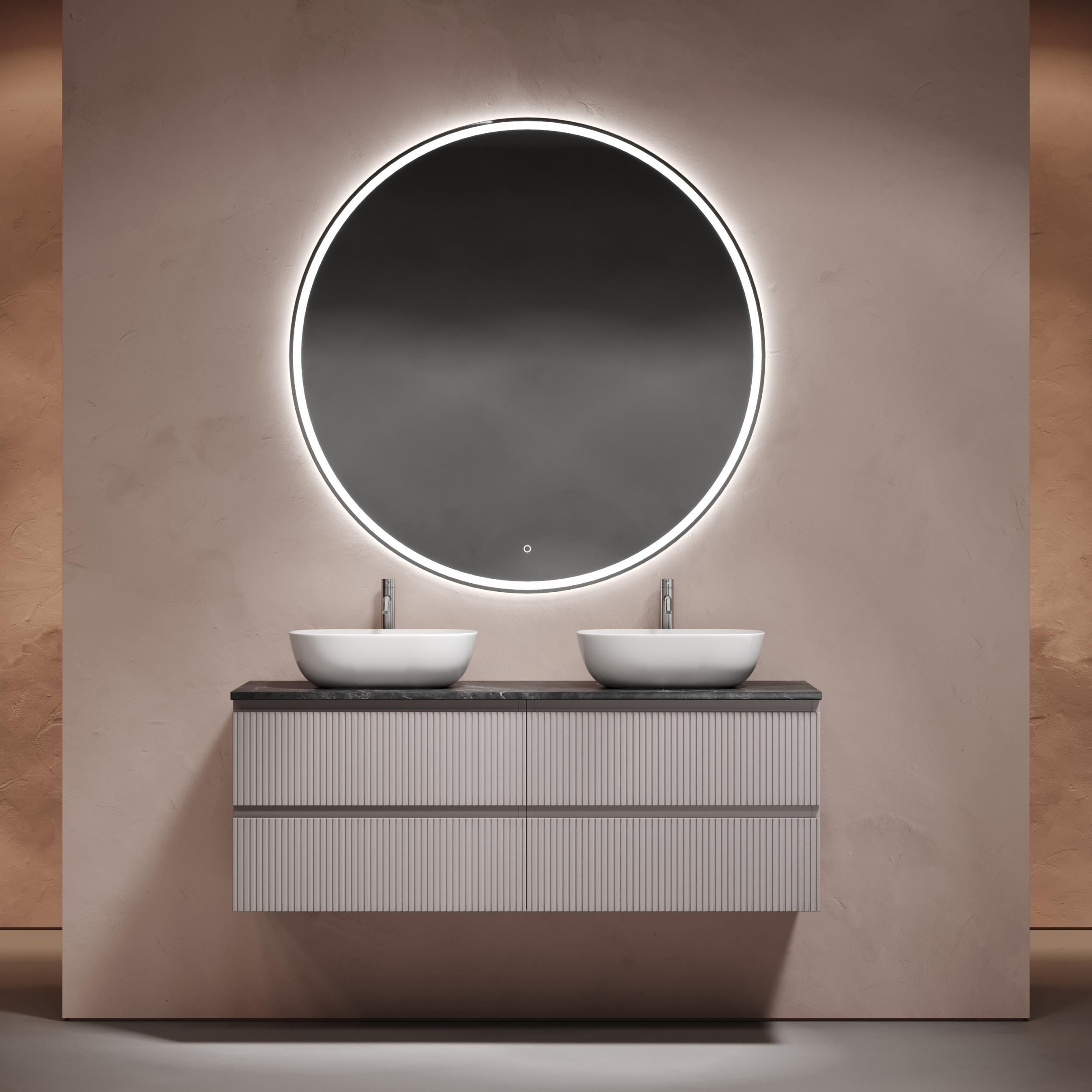 Тумбы подвесные Sancos Snob T 80 см SNT80SM с доводчиками, 2 раковины Element CN6009, столешница с отверстием под смеситель TT160A1X, цвет Doha Soft.