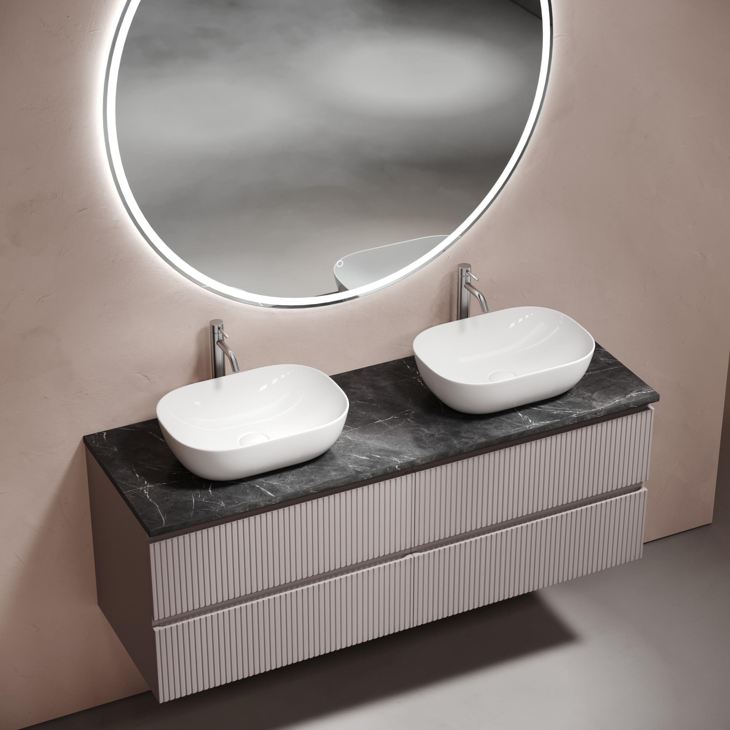 Тумба подвесная с раковиной Sancos Snob T 160 см SNT80SM, Doha Soft (раковины Element CN6009, столешница TT160A1X)