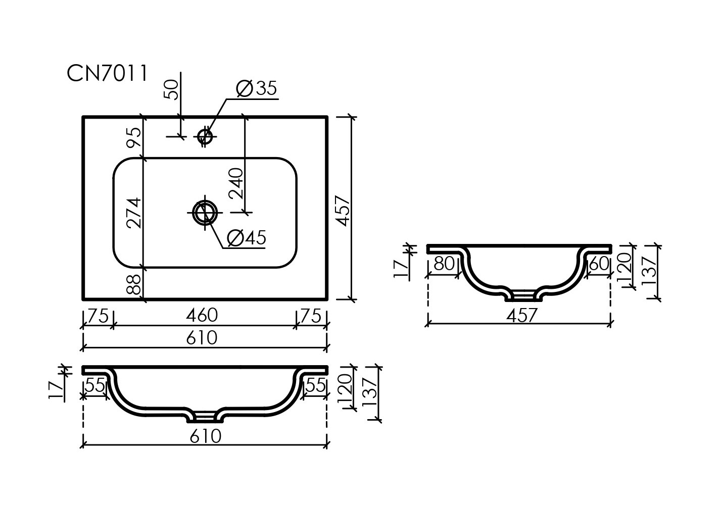 • Раковина накладная Grace прямоугольная, с отверстием под смеситель, 610*457*137 мм, цвет белый