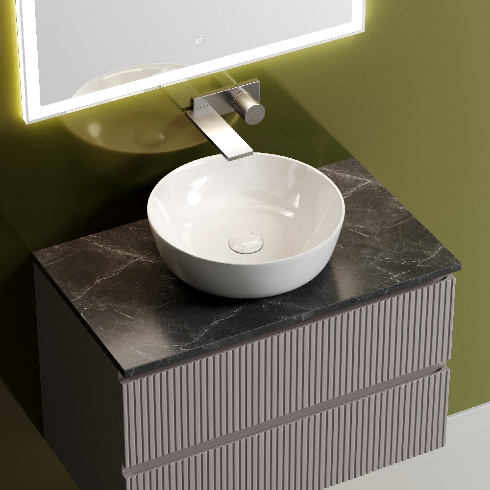 Тумба подвесная Sancos Snob T 80 см SNT80SM с доводчиком, раковина-чаша Element CN6013, столешница без отверстия под смеситель TT80A1, цвет Doha Soft.