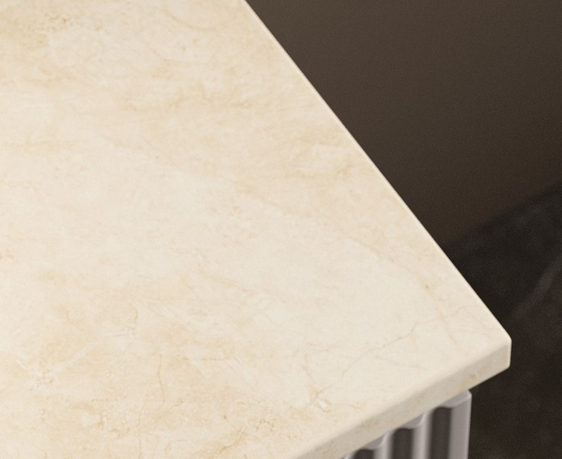 - Столешница для ванной комнаты из керамогранита, для установки на подвесную тумбу. C готовым отверстием для установки накладной раковины. С заранее просверленным отверстием под смеситель. Размер 800 x 460. Цвет Kreman. На тумбу фиксируется с помощью герметика.
