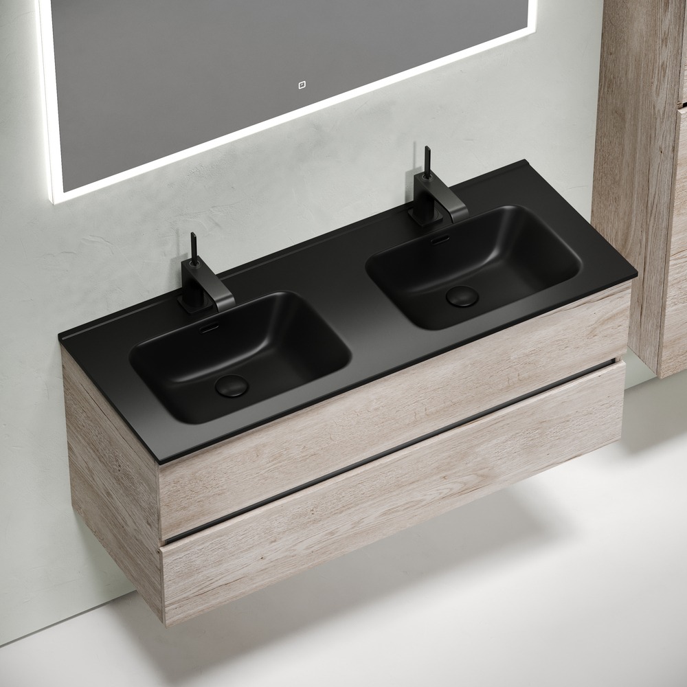 Тумба подвесная Sancos Urban 120 см UR120-2EG с доводчиком и раковиной Element CN7004MB, цвет дуб галифакс натуральный.