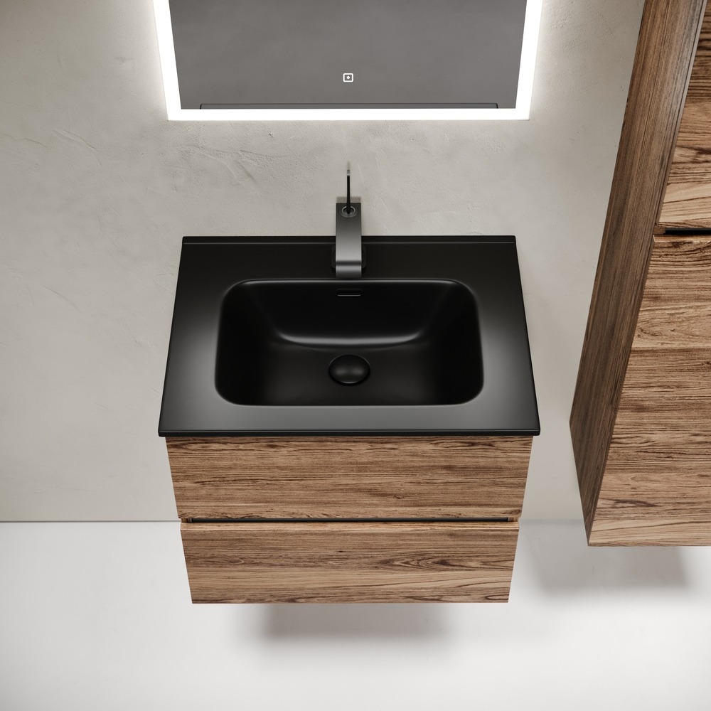 Тумба подвесная Sancos Urban 60 см UR60ECH с доводчиком и раковиной Element CN7001MB, цвет дуб чарльстон.