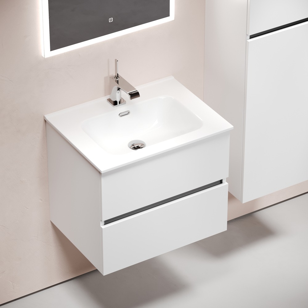Тумба подвесная с раковиной Sancos Urban 60 см UR60W c доводчиком и раковиной Element CN7001, цвет белый глянец.