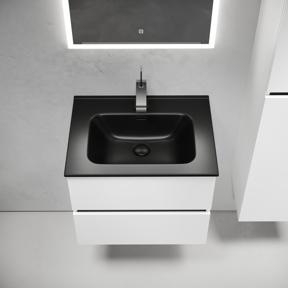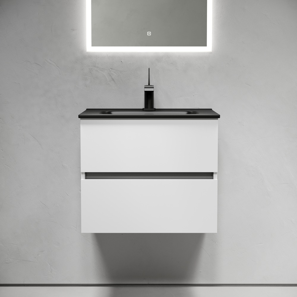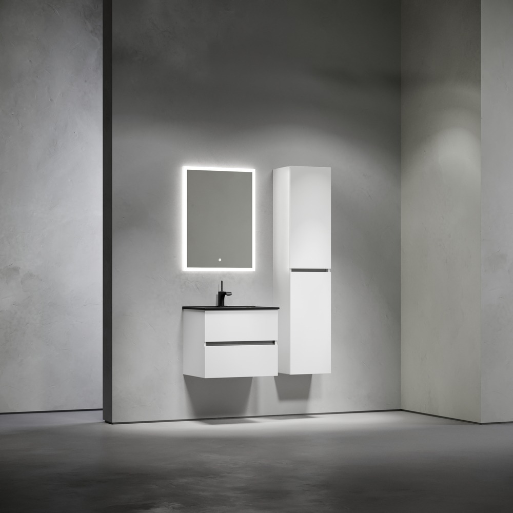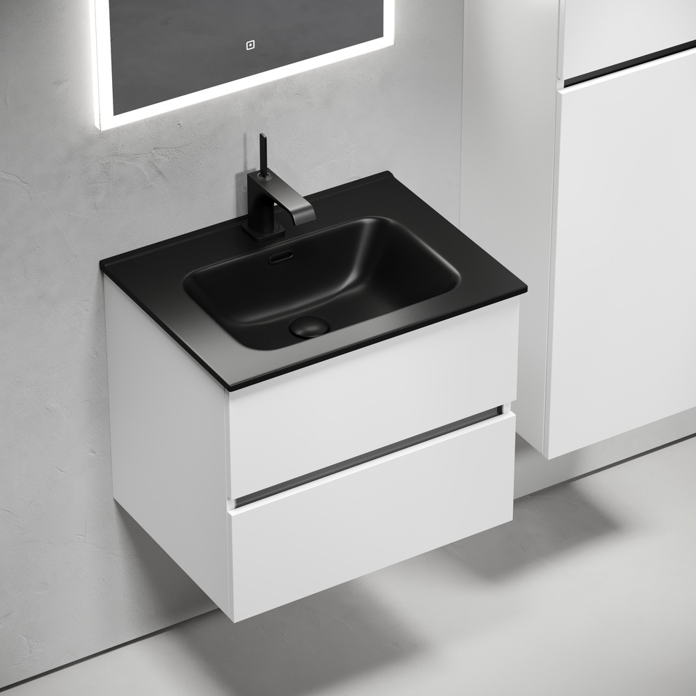 Тумба подвесная с раковиной Sancos Urban 60 см UR60W с доводчиком и раковиной Element CN7001MB, цвет белый глянец.