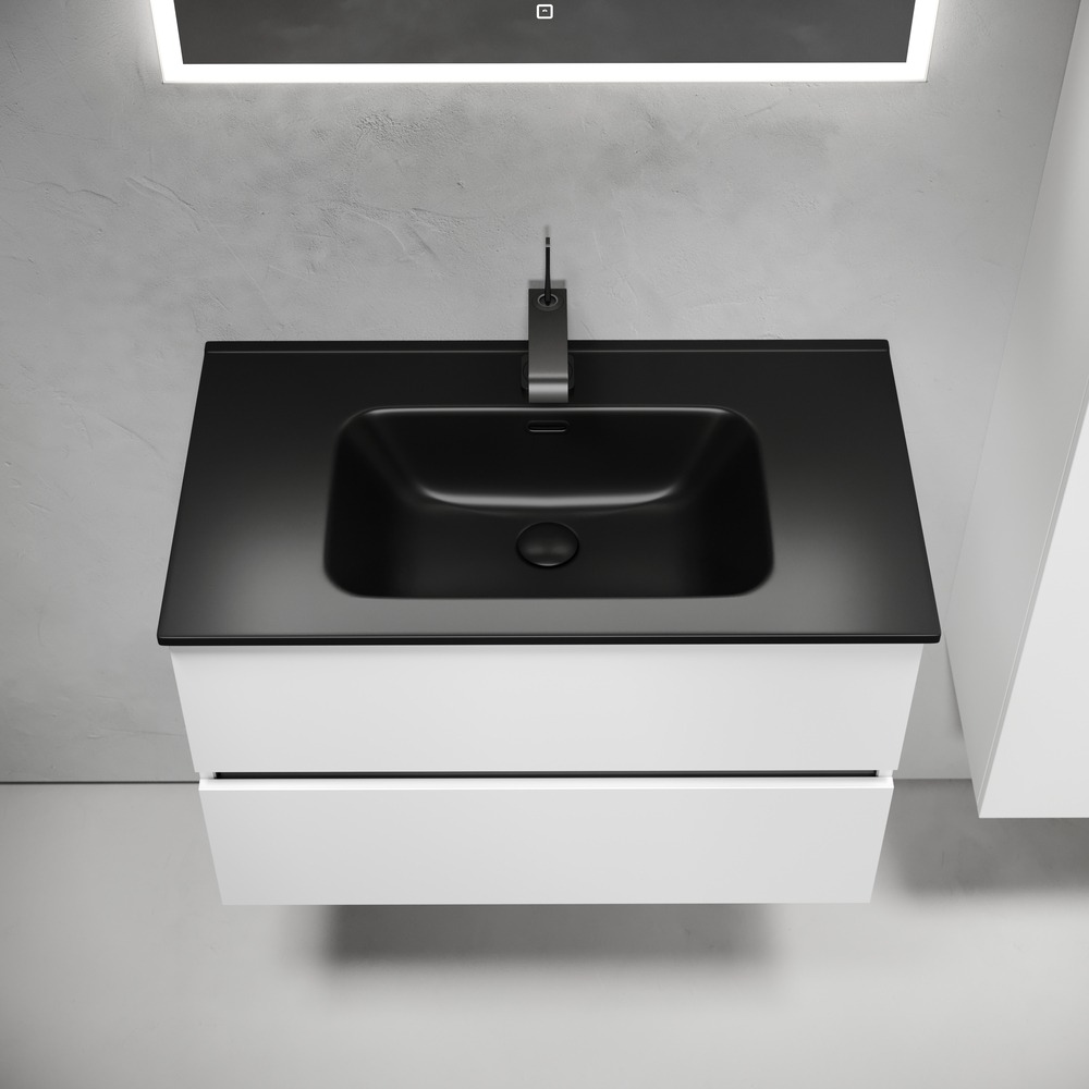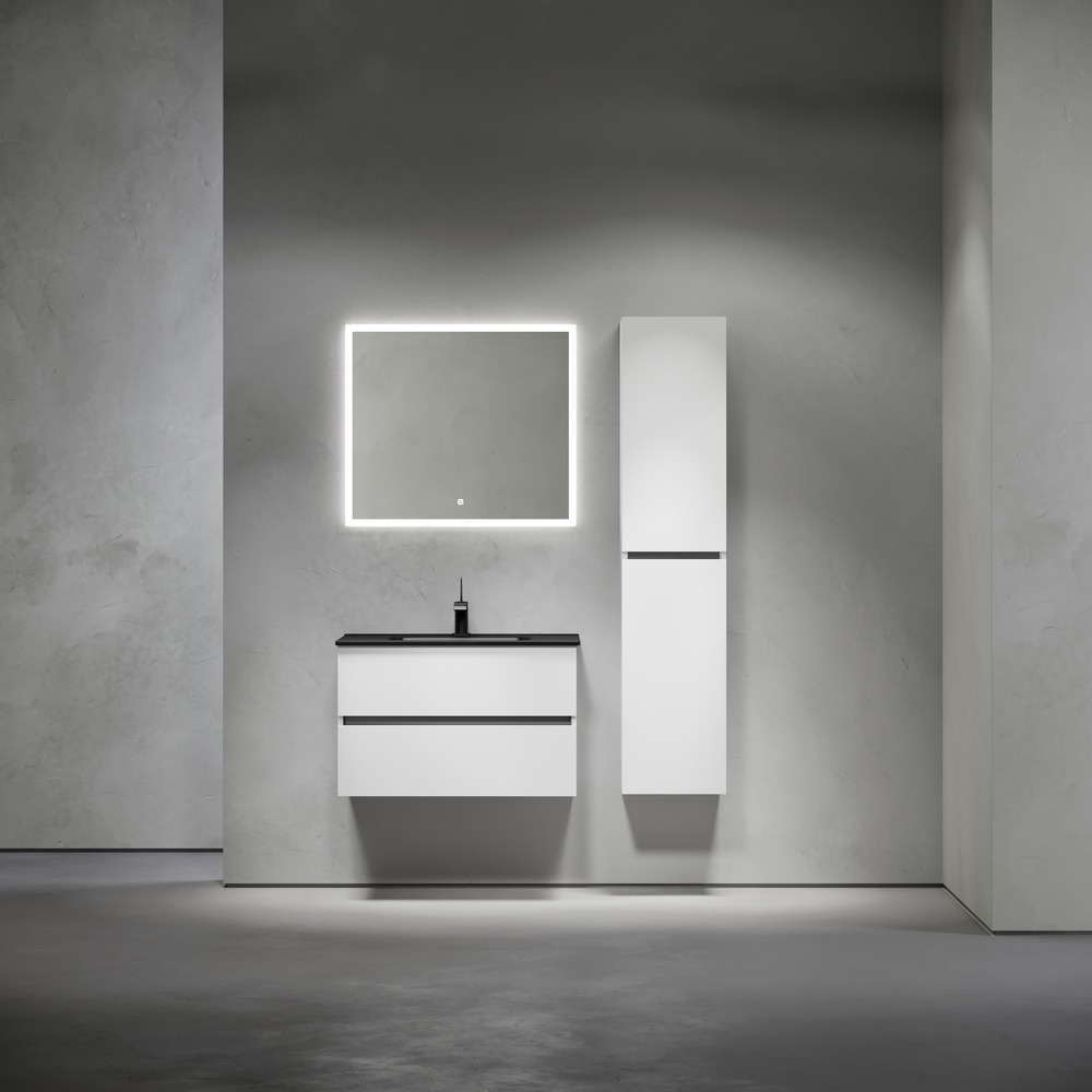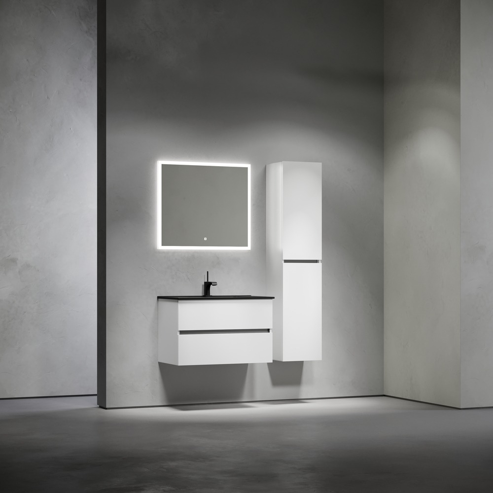 Тумба подвесная с раковиной Sancos Urban 80 см UR80W c доводчиком и раковиной Element CN7005MB, цвет белый глянец.