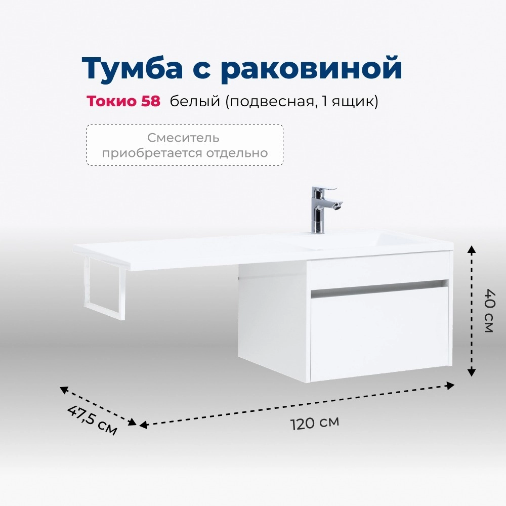 - Тумба под раковину Aquanet Токио 120 (подвесная, 1 ящик) белого цвета представляет новый формат тумб производства Aquanet.