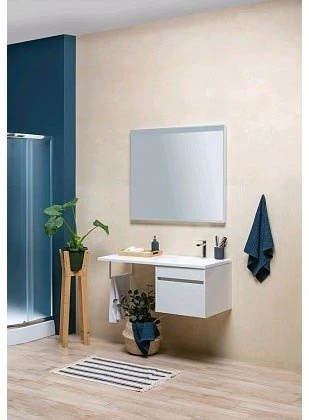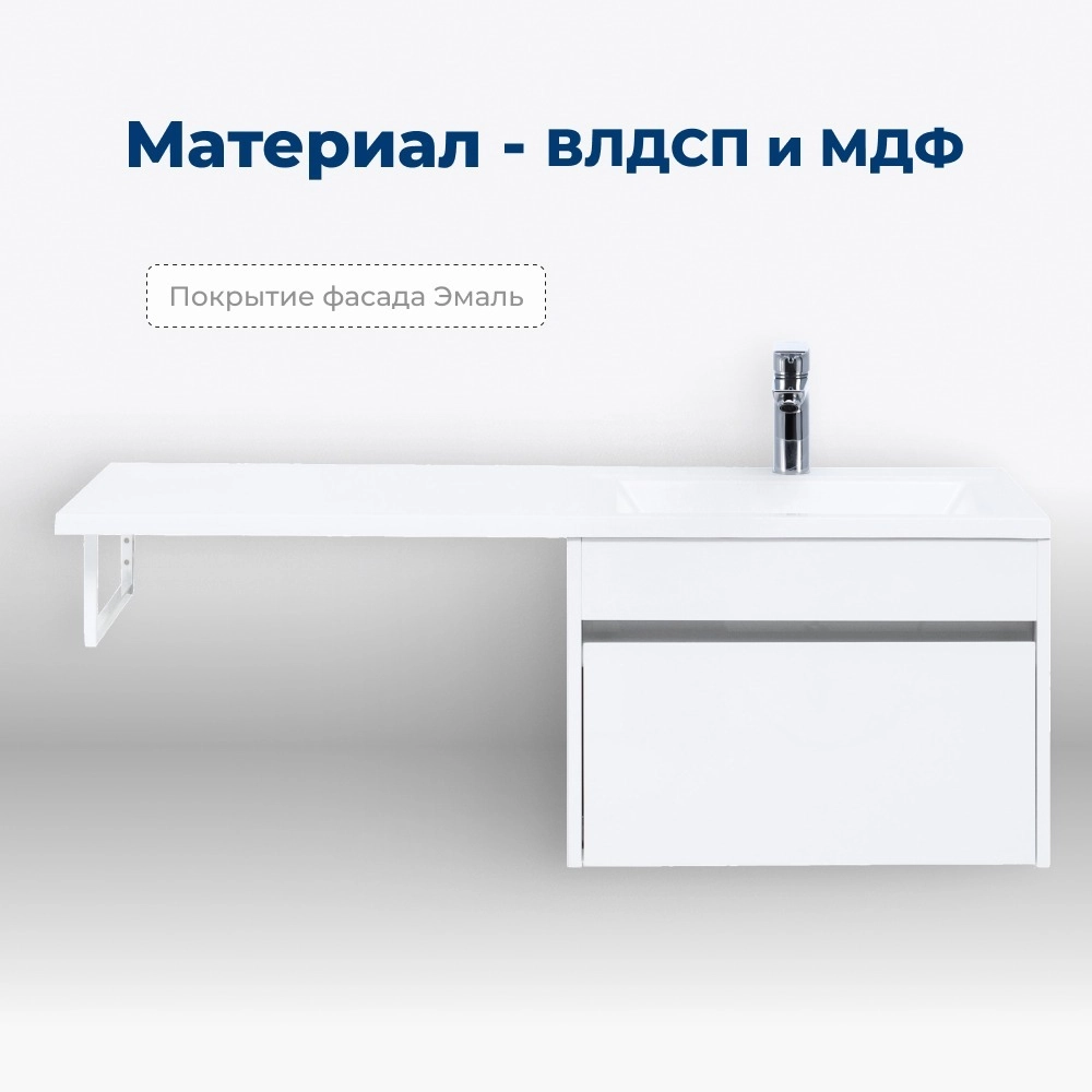 - Корпус тумбы выполнен из влагостойкого ЛДСП, а фасад – из МДФ с покрытием эмалью.