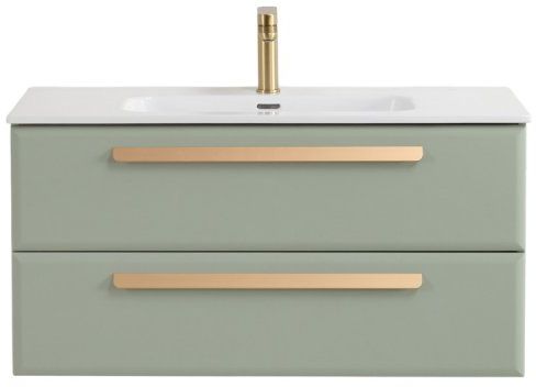 Тумба подвесная с раковиной-столешницей Cezares 100 см ECO-CER-N-1000-2C-SO-VDO-P (раковина CZR-8095-100) светло-зелёный матовый