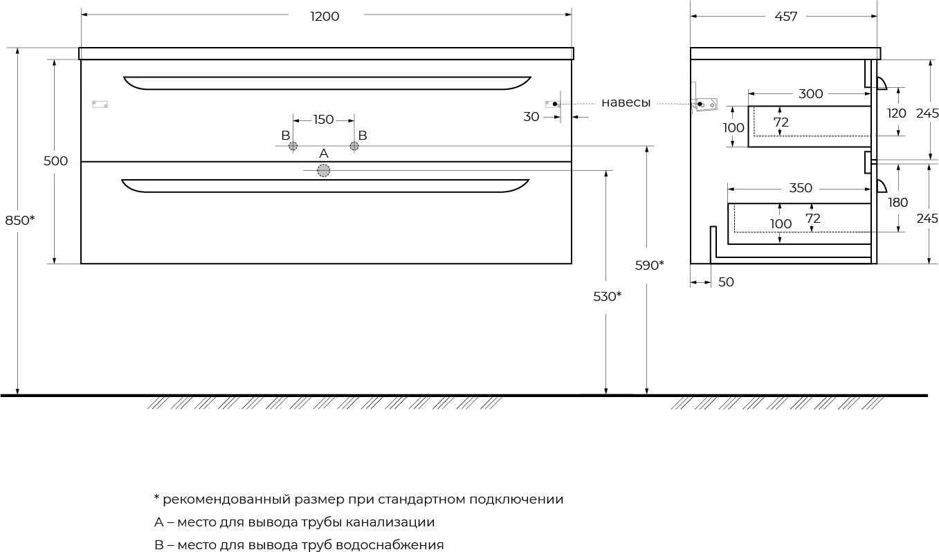 Характеристики тумба с раковиной-столешницей Cezares (ECO-CER-N-1200-2C-SO-VDO-P+CZR-8095-120)