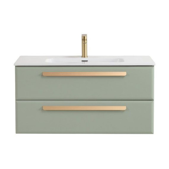 Тумба подвесная с раковиной-столешницей Cezares ECO-CER-N-800-2C-SO-VDO-P 80 см (раковина CZR-8095-80) светло-зелёный матовый