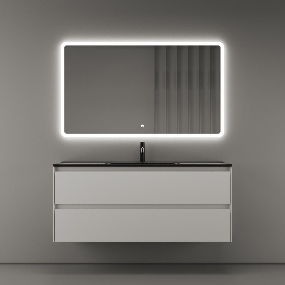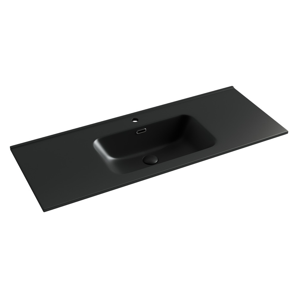 Тумба подвесная Sancos Cento 120 см CN120-1W с доводчиком и раковиной-столешницей Element CN7006MB, цвет белый глянец.
