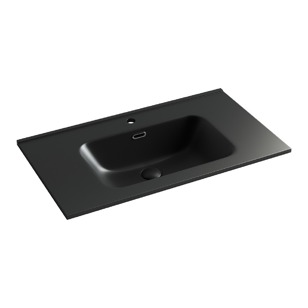 Тумба подвесная Sancos Cento 80 см CN80W с доводчиком и раковиной-столешницей Element CN7005MB, цвет белый глянец.