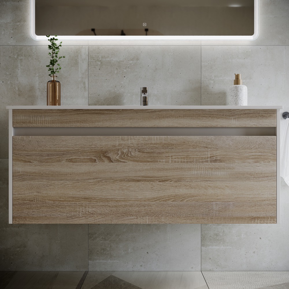 Тумба подвесная с раковиной-столешницей Sancos Smart 120 см SM120-1E, дуб бардолино/белый