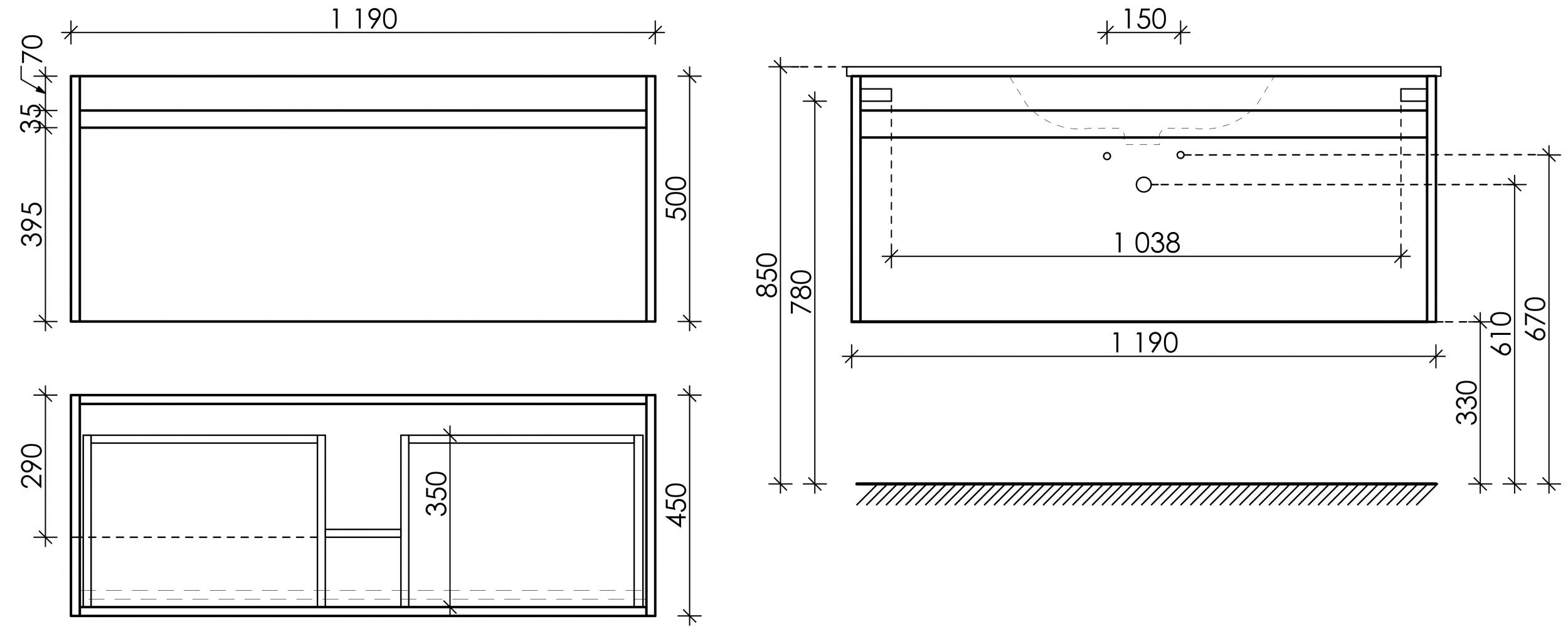 Тумба подвесная с раковиной-столешницей Sancos Smart 120 см SM120-1W