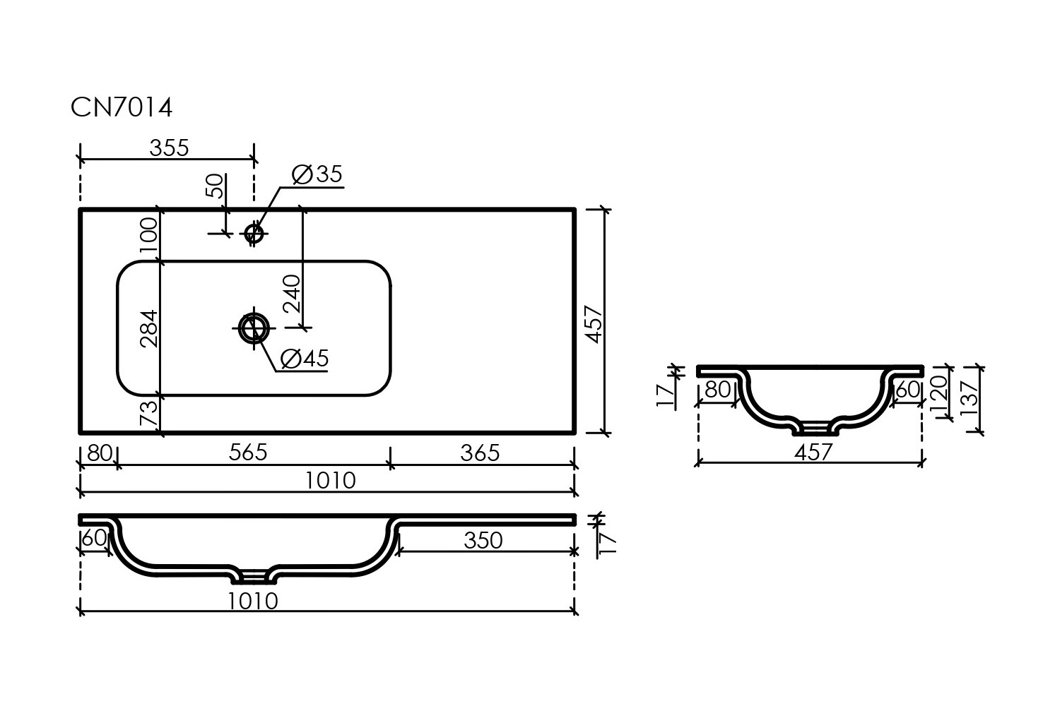 - Раковина накладная Grace прямоугольная 1010*457*137мм, чаша слева, с отверстием под смеситель.