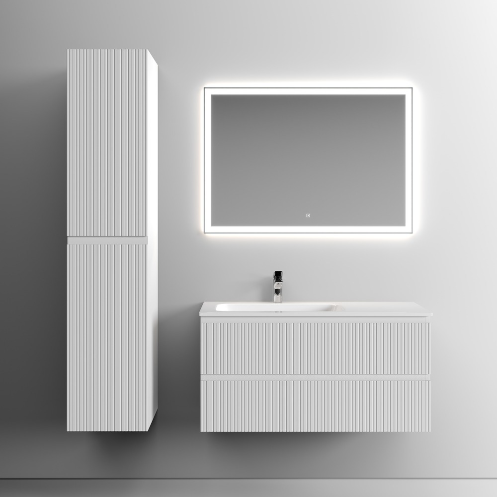 Тумба подвесная Sancos Snob T 100 см SNT100LW с доводчиком и раковиной-столешницей Grace CN7014, цвет Bianco.