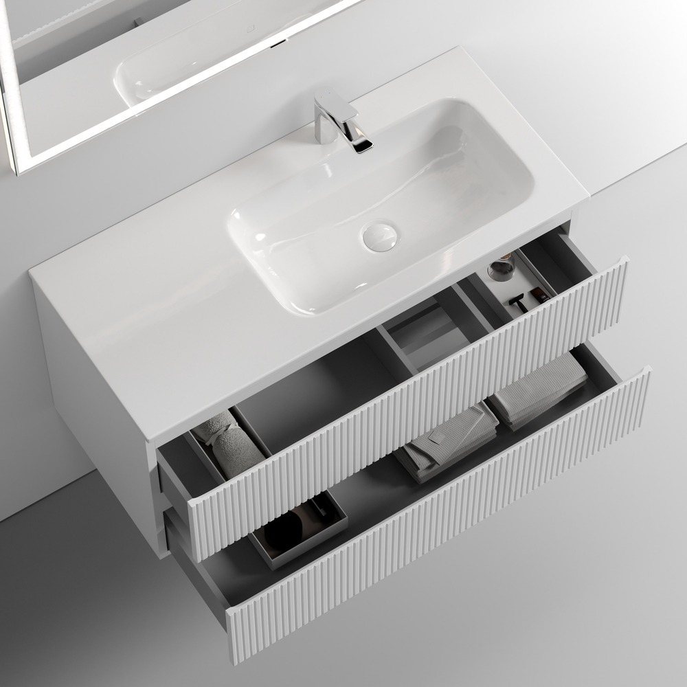 Тумба подвесная с раковиной-столешницей Sancos Snob T 100 см SNT100RW R, Bianco (раковина Grace CN7015)