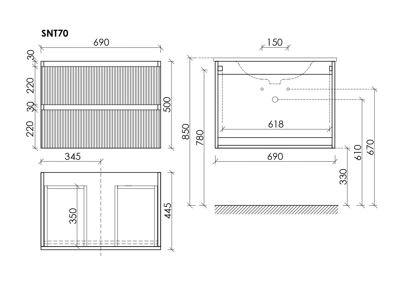 Характеристики тумба с раковиной-столешницей Sancos (SNT70SM+CN7007MB)