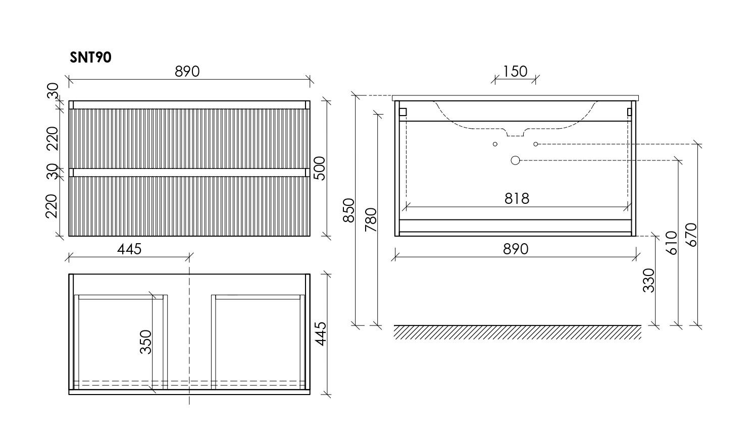 - Тумба подвесная Snob T c двумя ящиками оснащенными доводчиками скрытого монтажа с системой плавного закрывания. Каркас и фасад тумбы выполнен из МДФ, покрытие ПВХ - пленка в цвете «Doha Soft». Размер 890х445х500