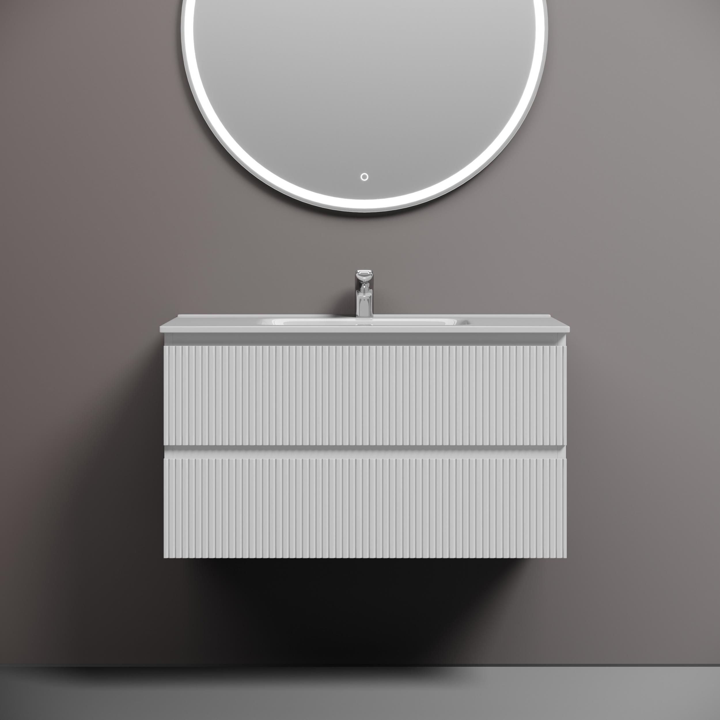 Тумба подвесная Sancos Snob T 90 см SNT90W с доводчиком и раковиной-столешницей Element CN7002, цвет Bianco.