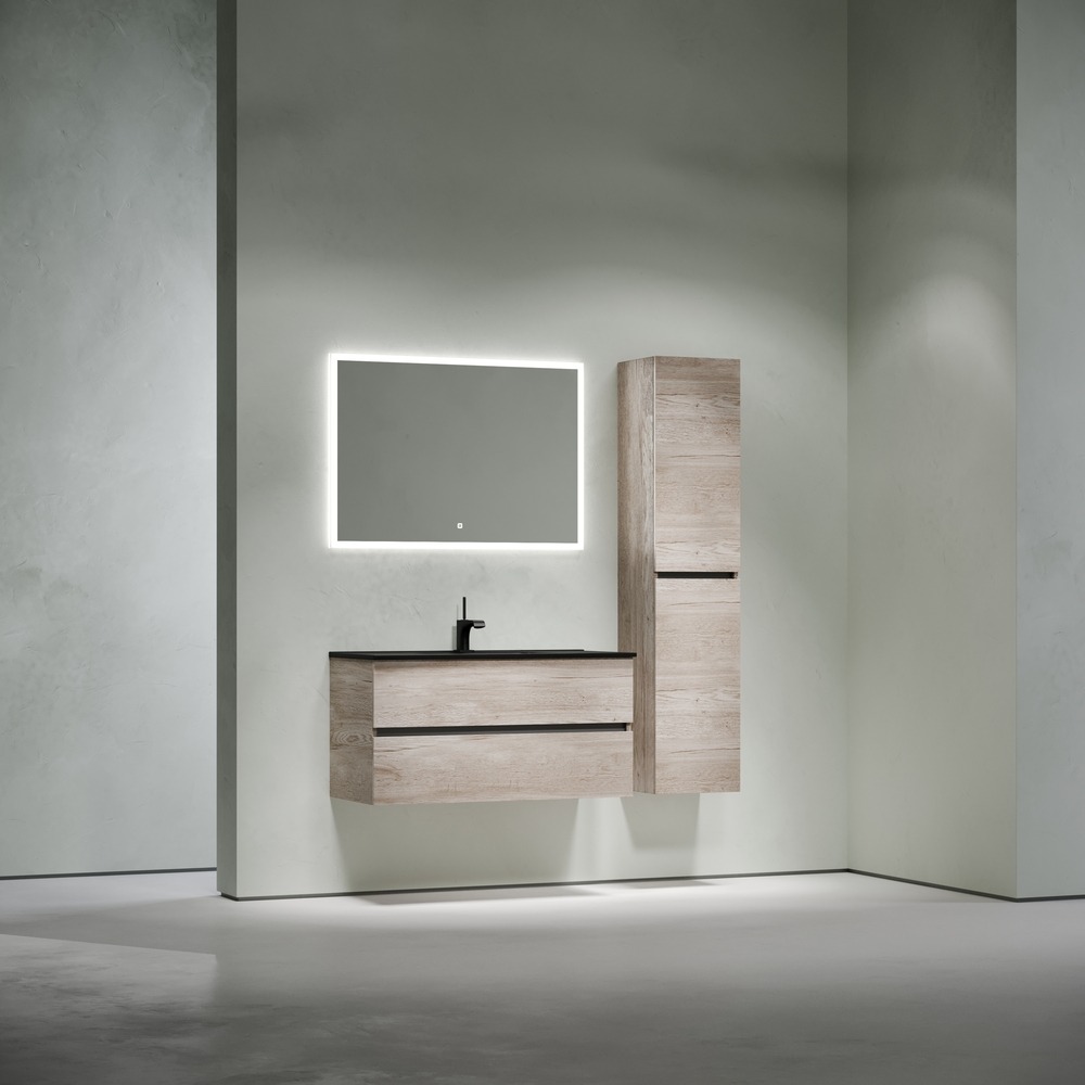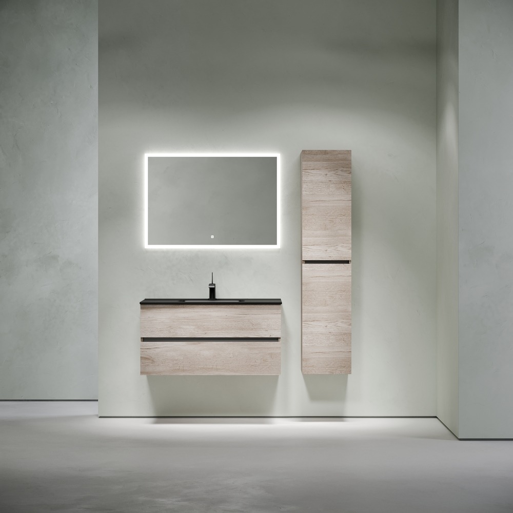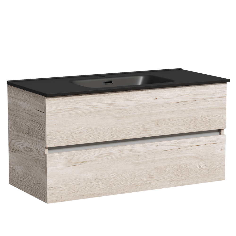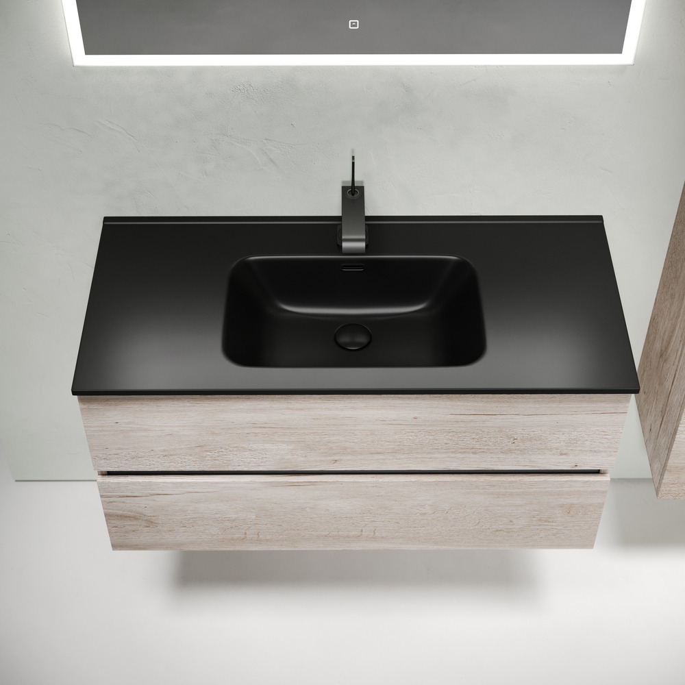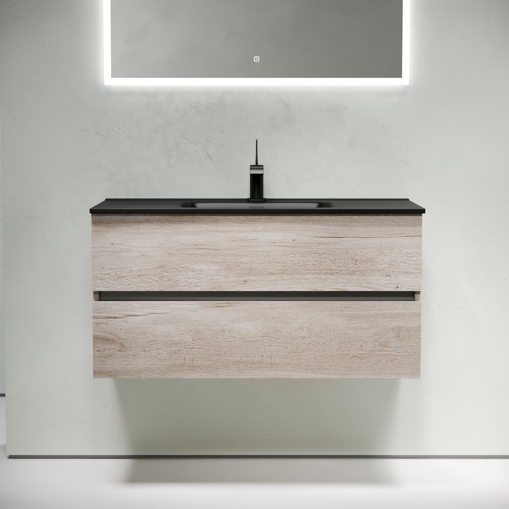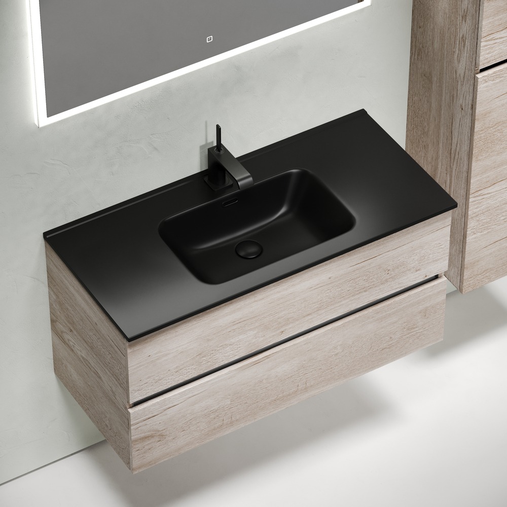 Тумба подвесная Sancos Urban 100 см UR100EG с доводчиком и раковиной-столешницей Element CN7003MB, цвет дуб галифакс натуральный.