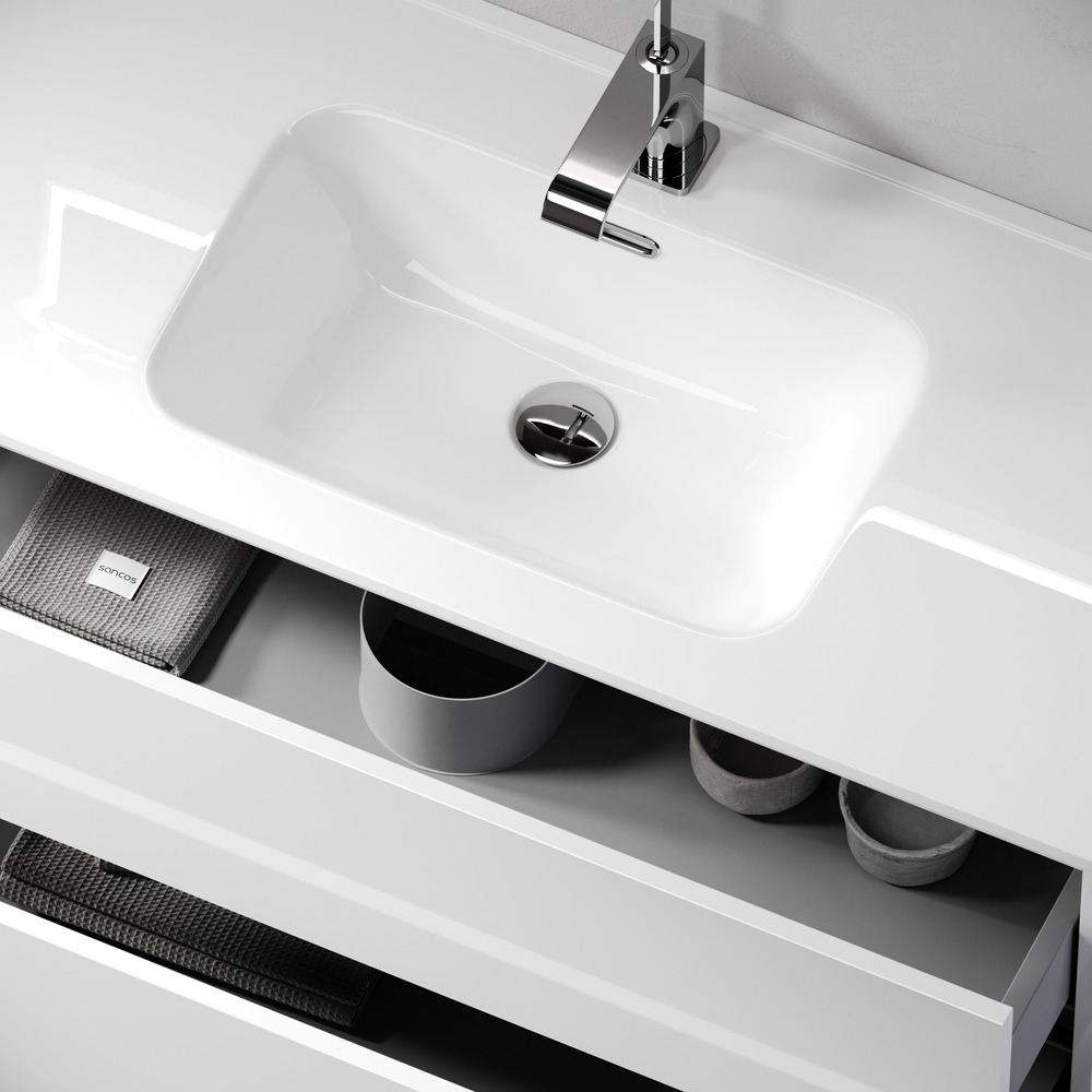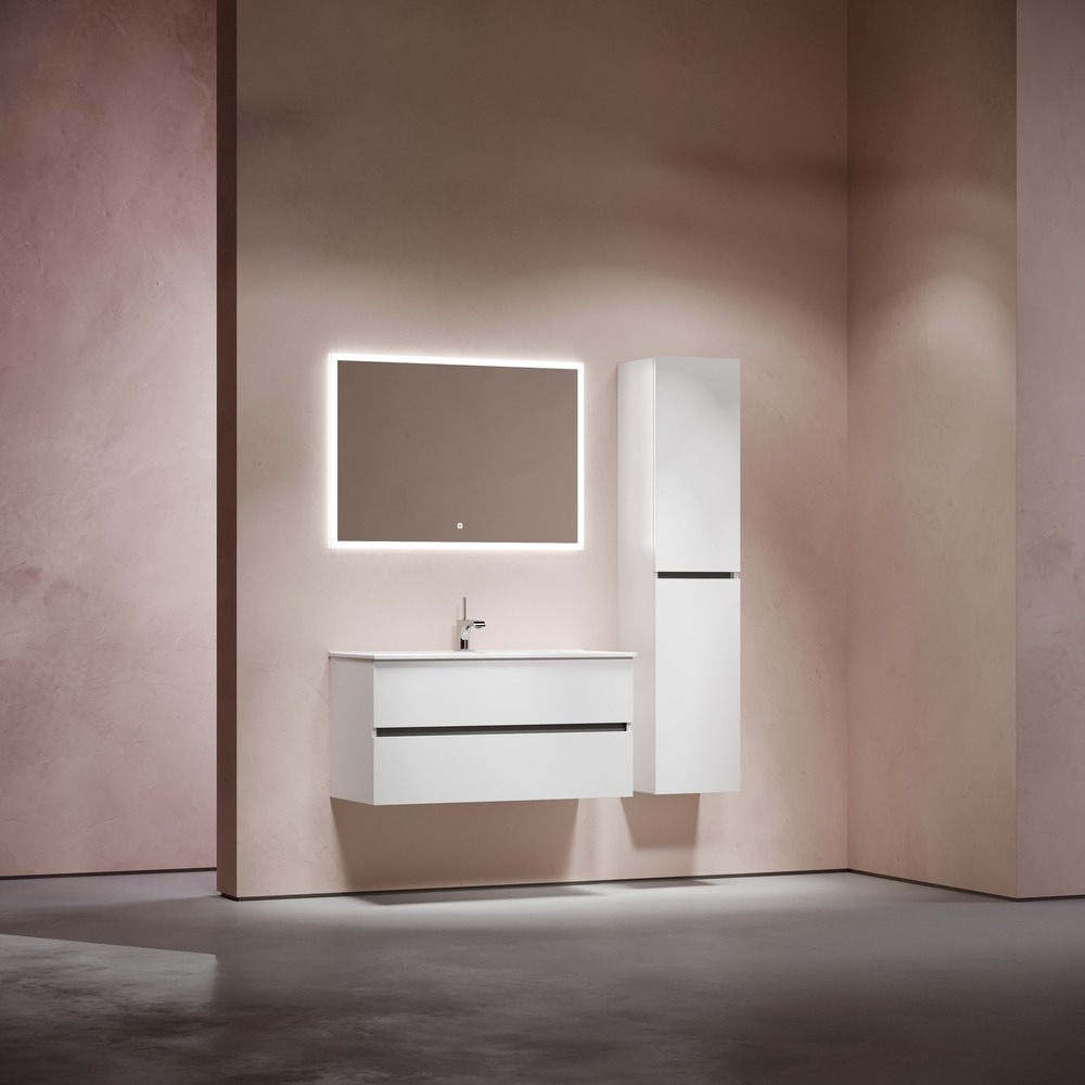 Тумба подвесная Sancos Urban 100 см UR100W c доводчиком и раковиной-столешницей Element CN7003, цвет белый глянец.