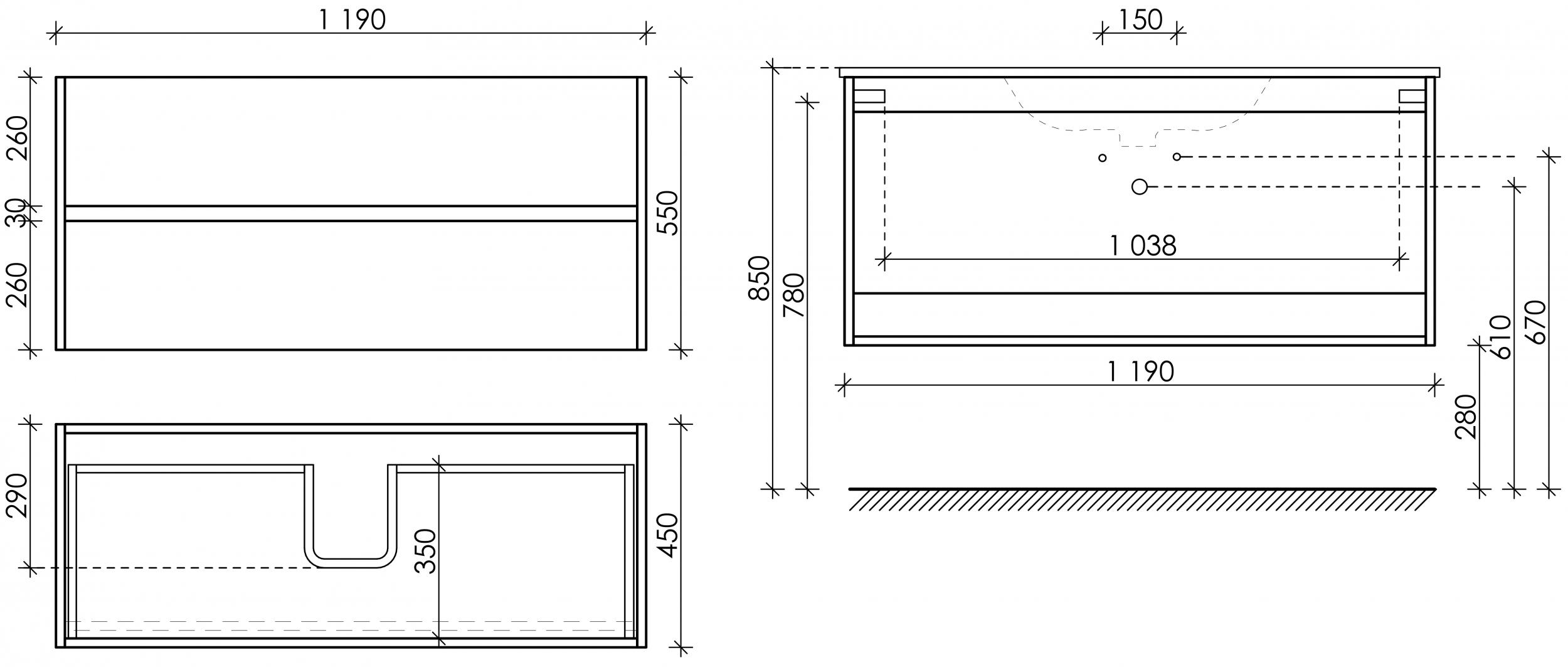 - Тумба подвесная Urban c двумя ящиками оснащенными доводчиками скрытого монтажа с системой плавного закрывания, а также с ручкой Gola по всей длине тумбы. Каркас тумбы и фасад выполнен из ЛДСП в цвете «дуб чарльстон».