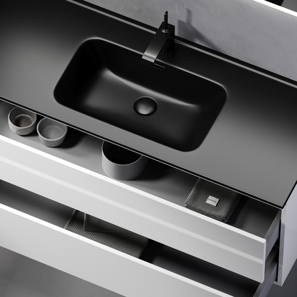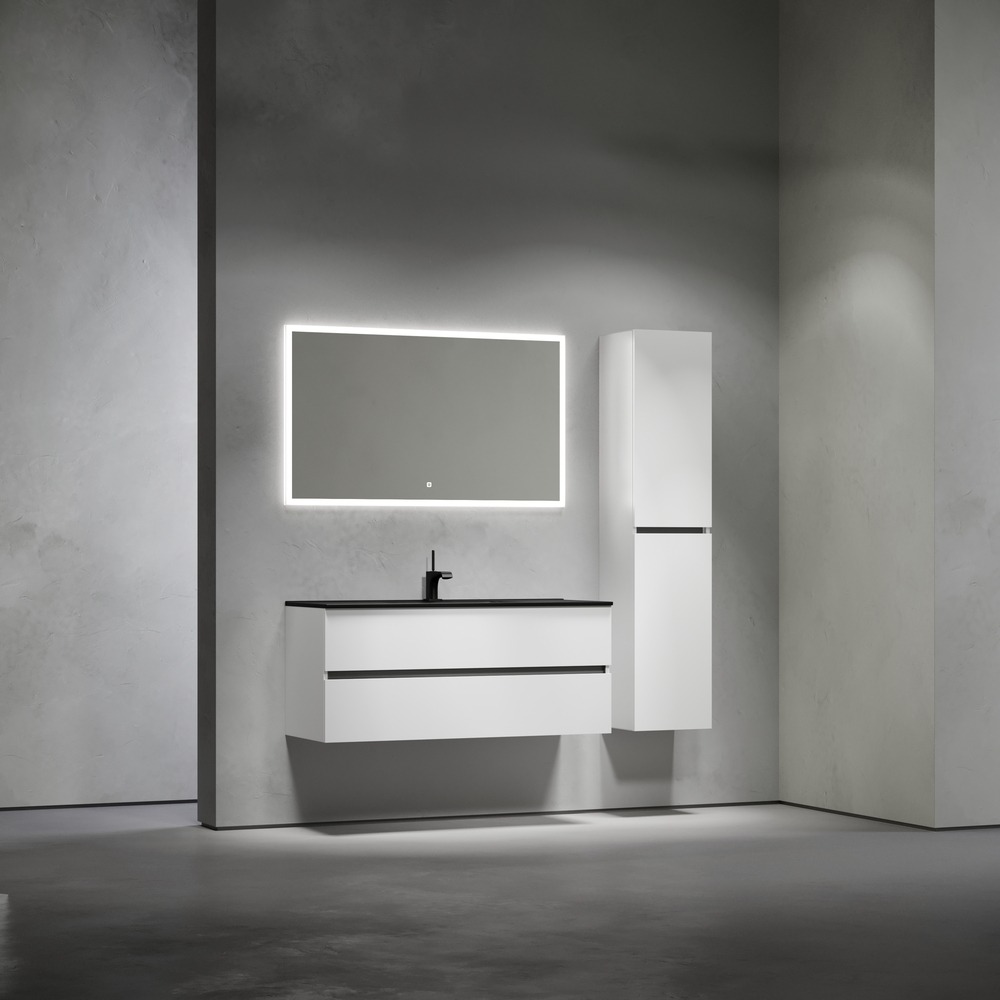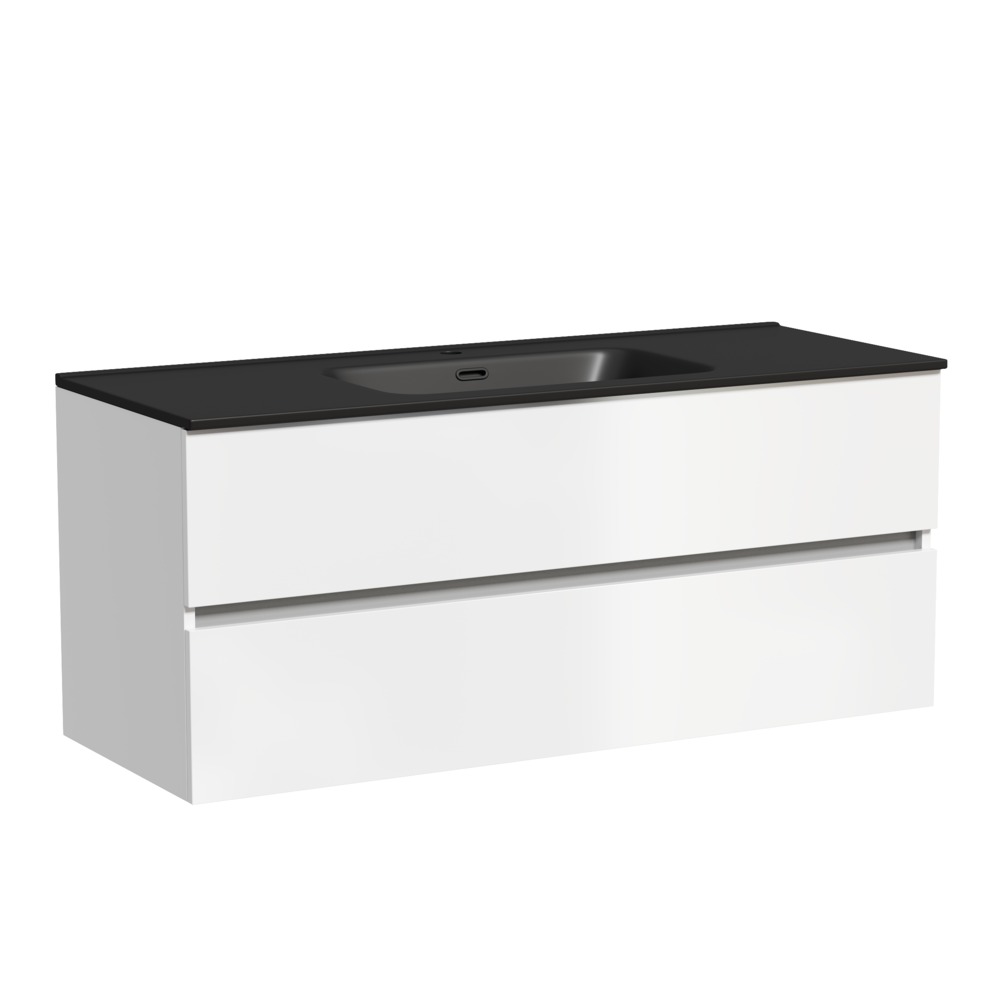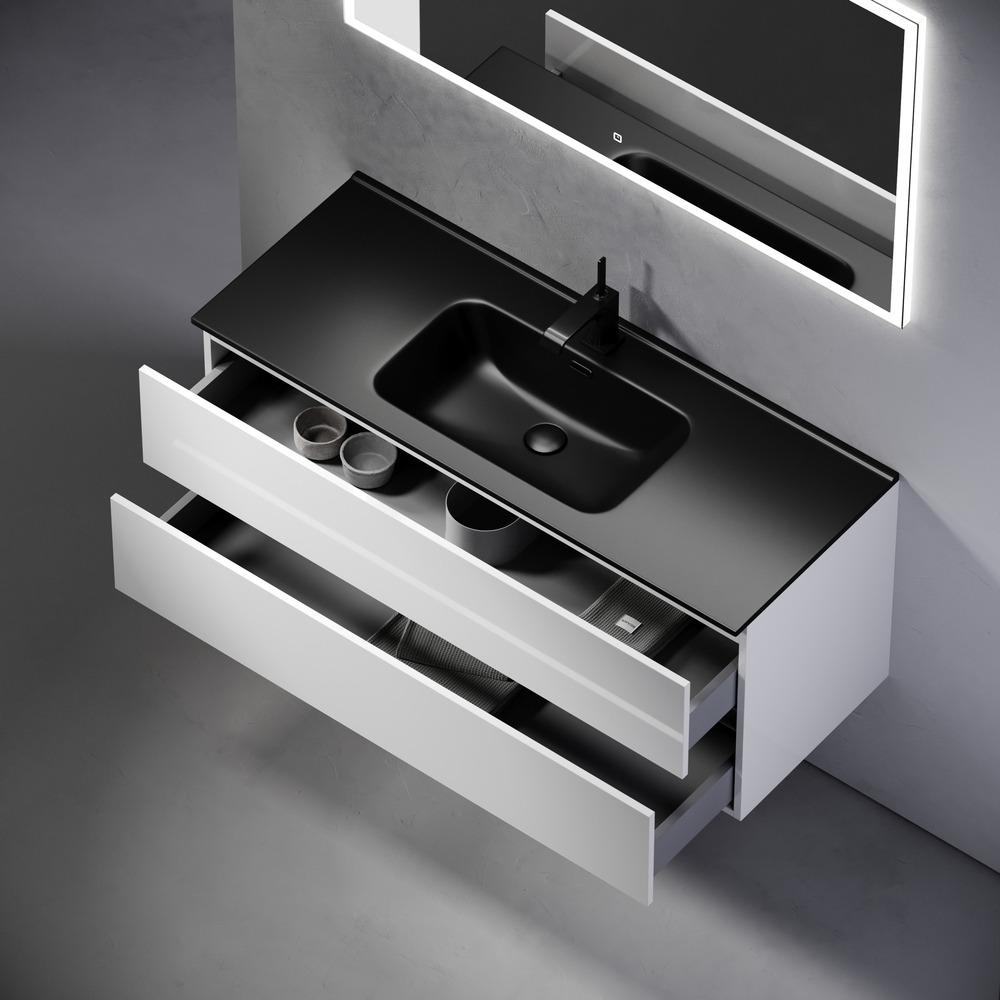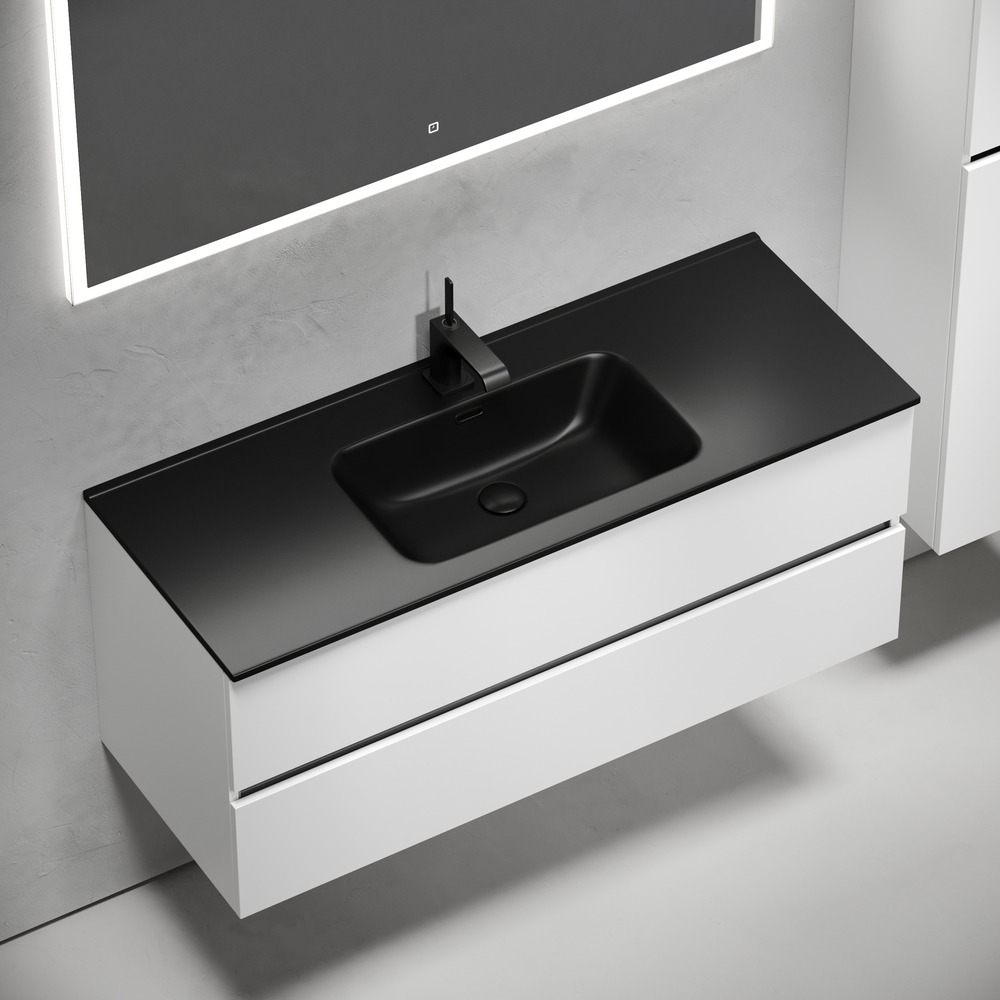 Тумба подвесная Sancos Urban 120 см UR120-1W c доводчиком и раковиной-столешницей Element CN7006MB, цвет белый глянец.