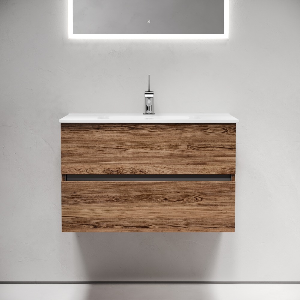 Тумба подвесная Sancos Urban 80 см UR80ECH с доводчиком и раковиной-столешницей Element CN7005, цвет дуб чарльстон.