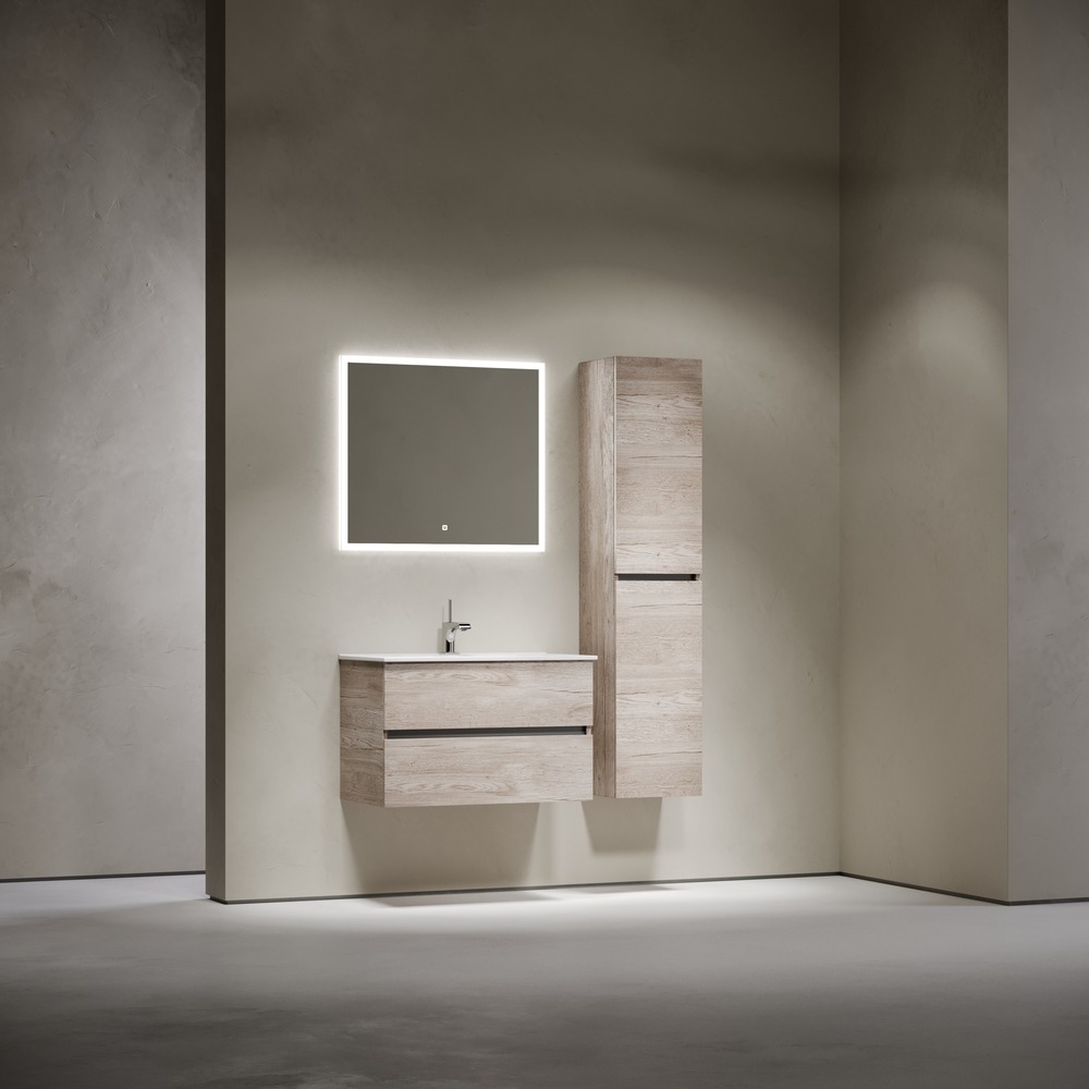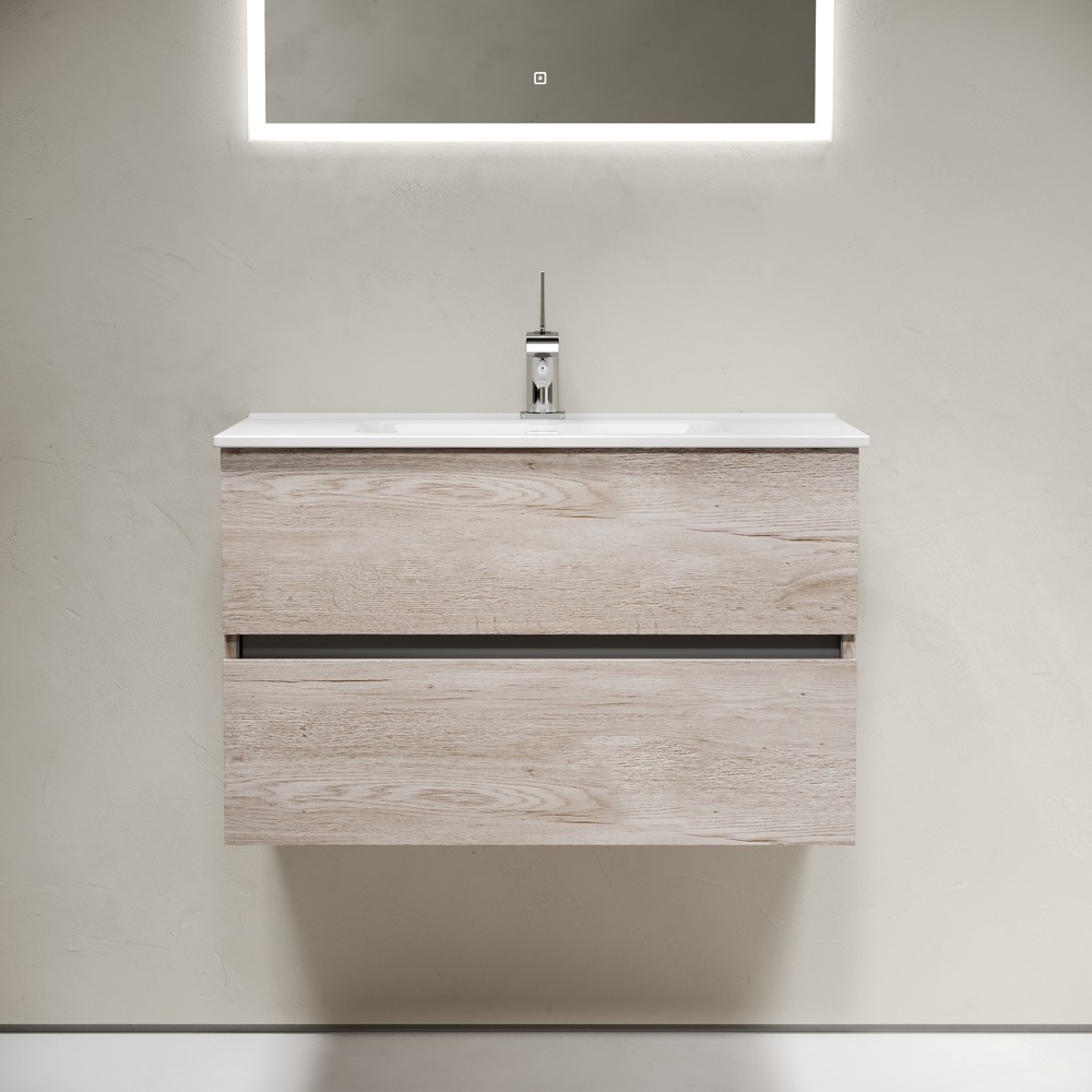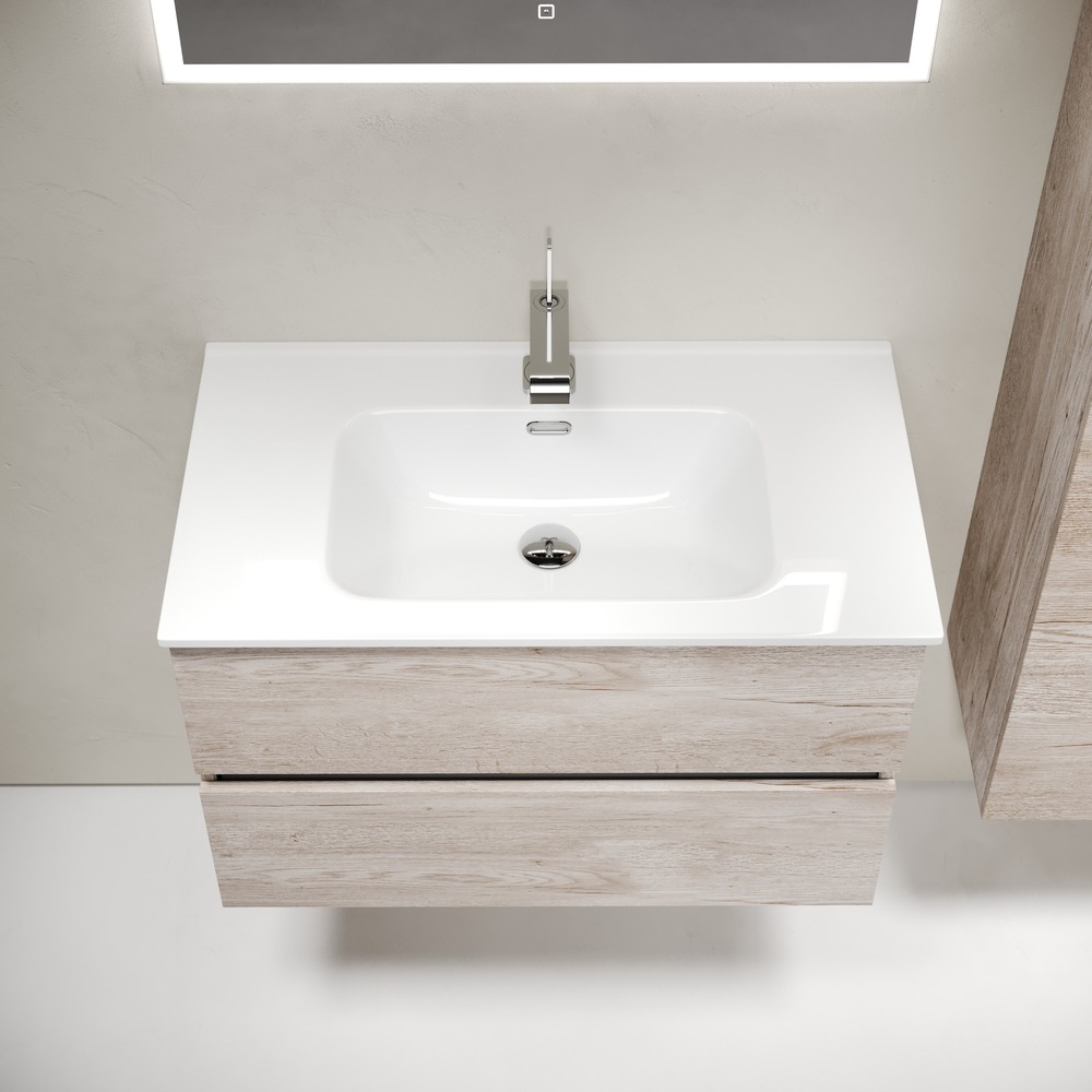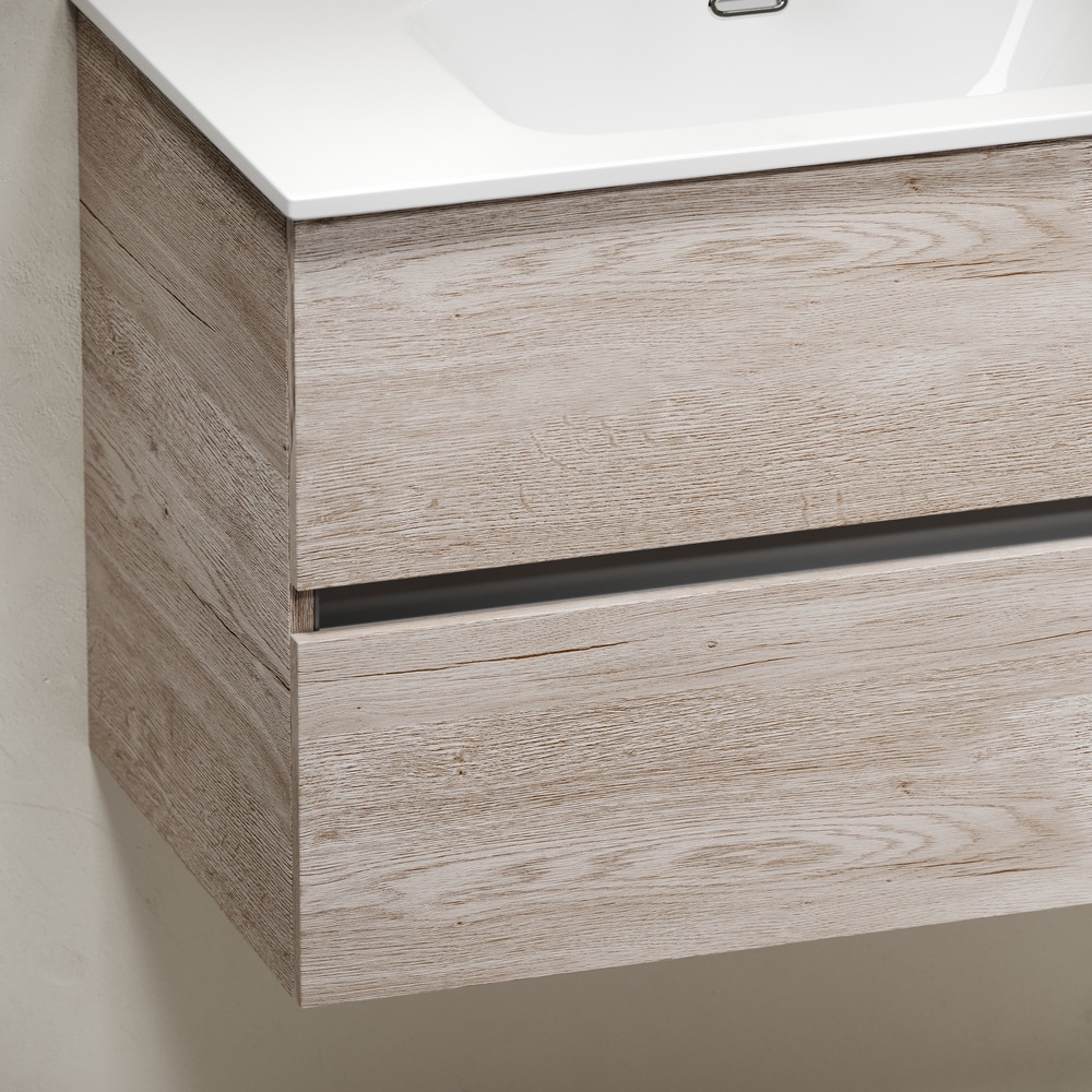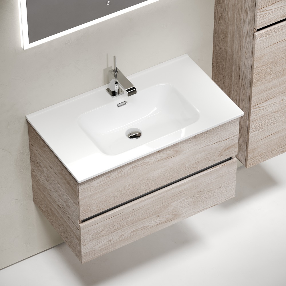Тумба подвесная Sancos Urban 80 см UR80EG с доводчиком и раковиной-столешницей Element CN7005, цвет дуб галифакс натуральный.