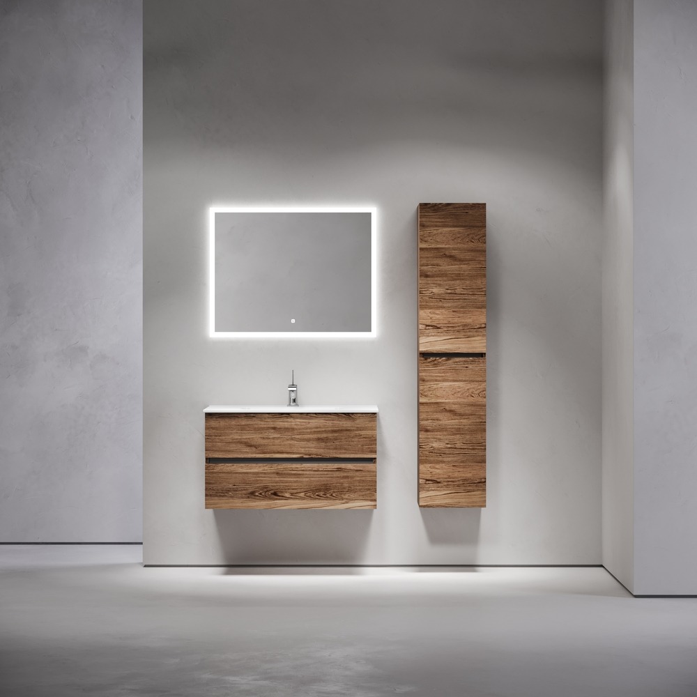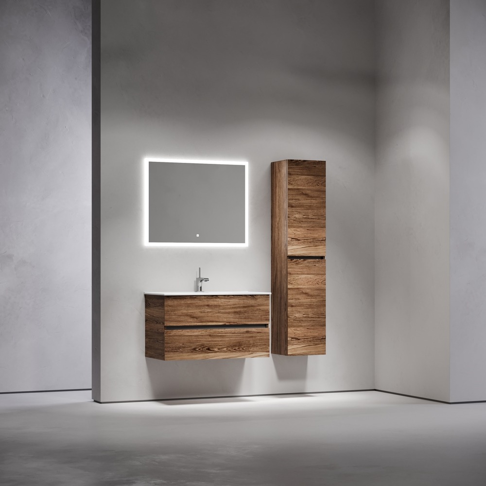 Тумба подвесная с раковиной-столешницей Sancos Urban 90 см UR90ECH, дуб чарльстон (раковина Element CN7002)
