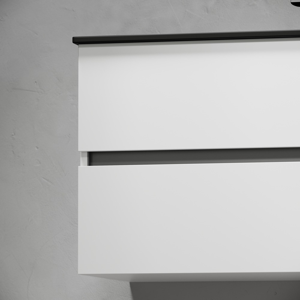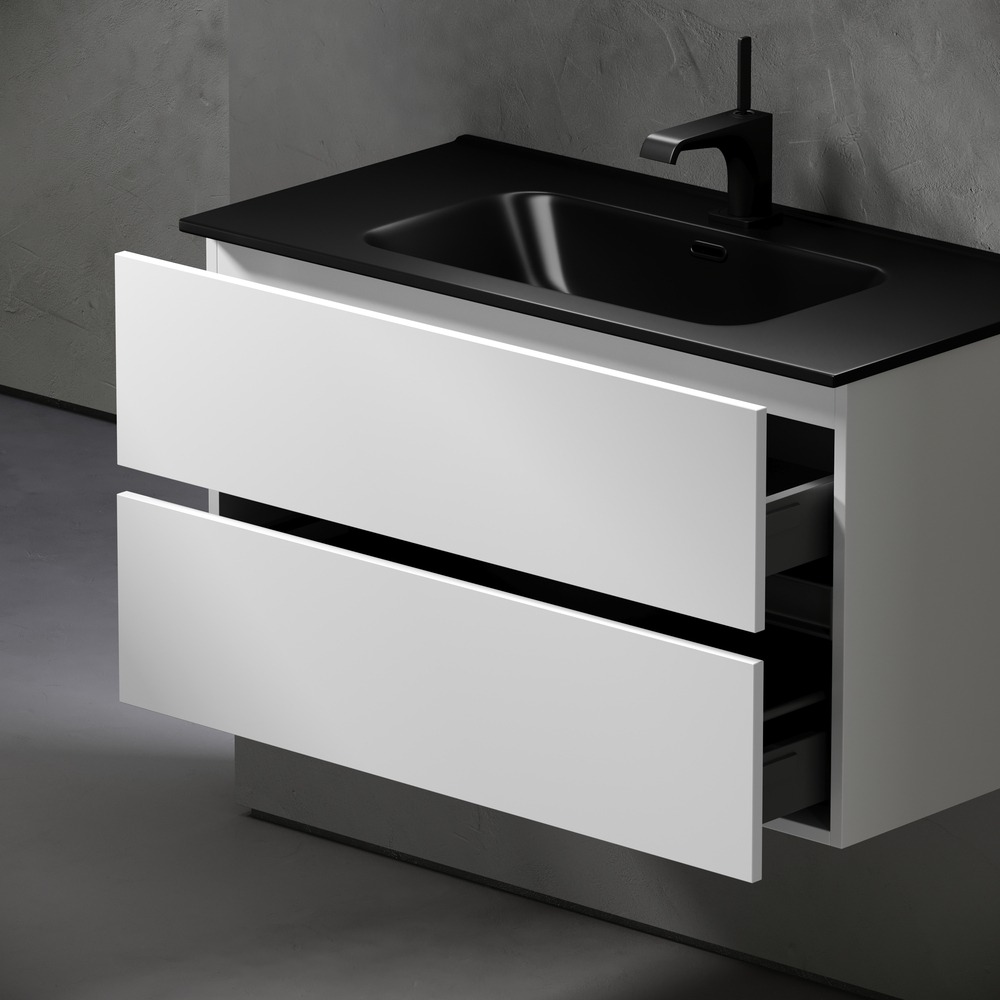 - Тумба подвесная Urban c двумя ящиками оснащенными доводчиками скрытого монтажа с системой плавного закрывания, а также с ручкой Gola по всей длине тумбы. Корпус тумбы выполнен из ЛДСП, фасад – из МДФ с покрытием "эмаль" в цвете «белый глянец».