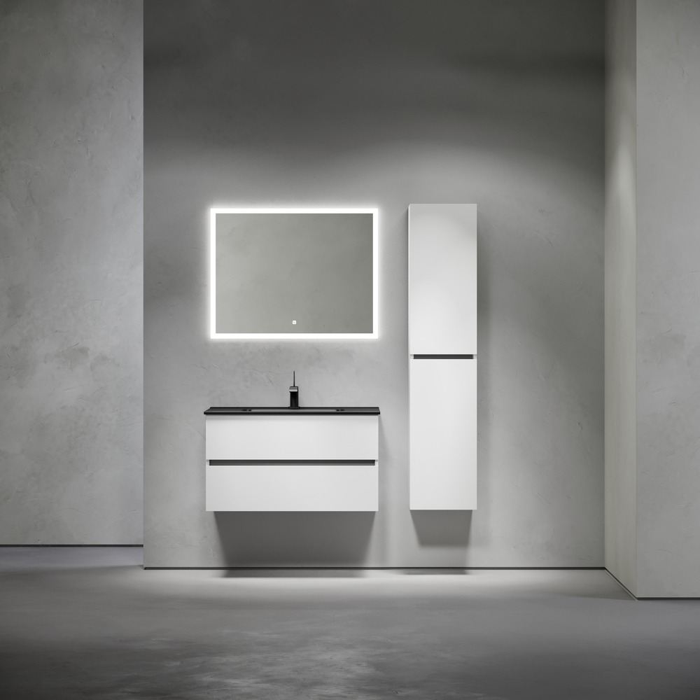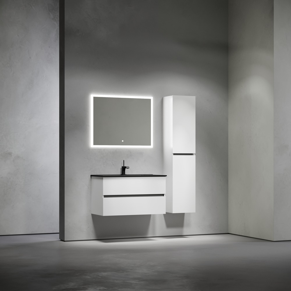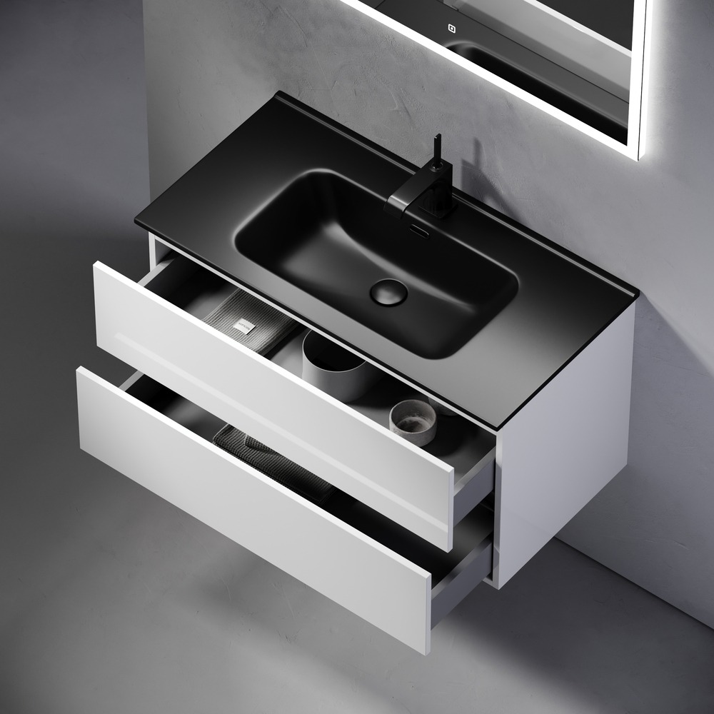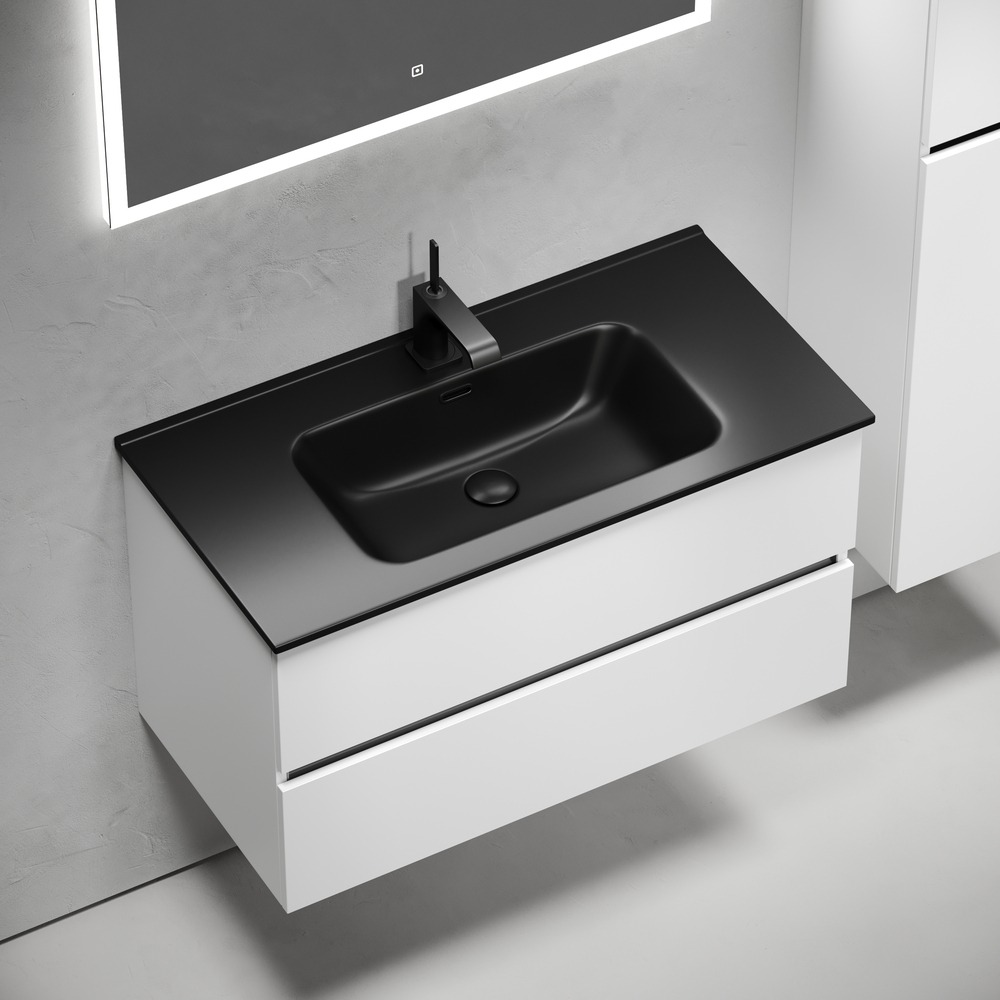 Тумба подвесная Sancos Urban 90 см UR90W c доводчиком и раковиной-столешницей Element CN7002MB, цвет белый глянец.