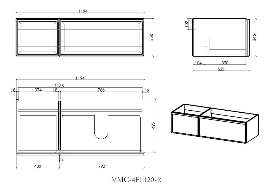 Характеристики тумба с раковиной, тумба с раковиной-столешницей Vincea (VMC-4EL120MG-R+VCB-4EL120MW-R)