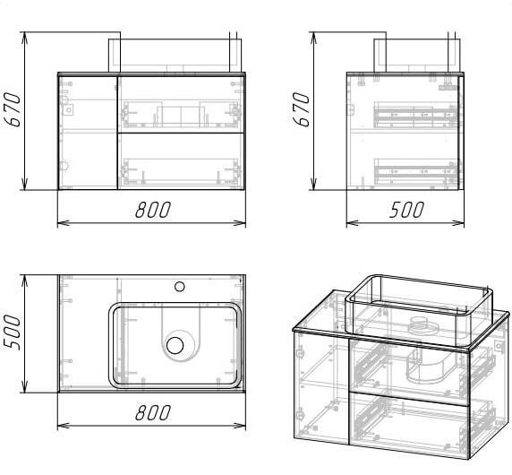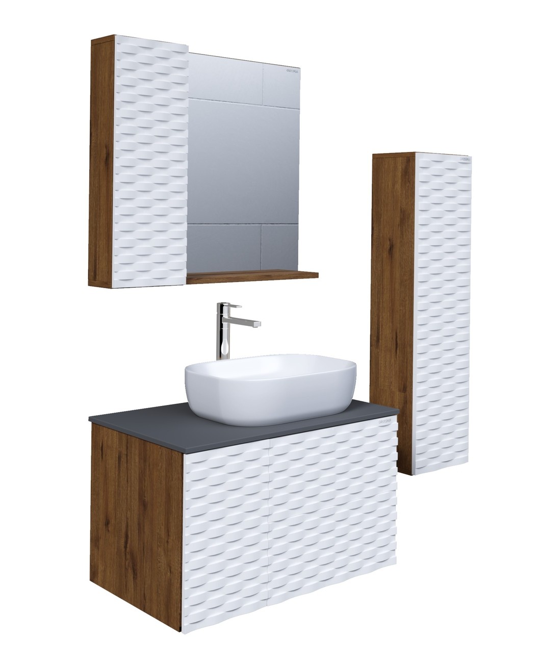 Тумба подвесная со столешницей Grossman Альба 80 см 108011 (раковина в комплекте) веллингтон/белая
