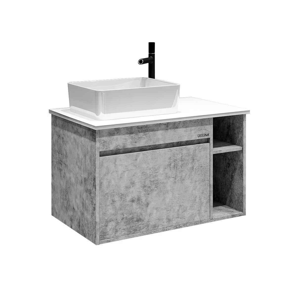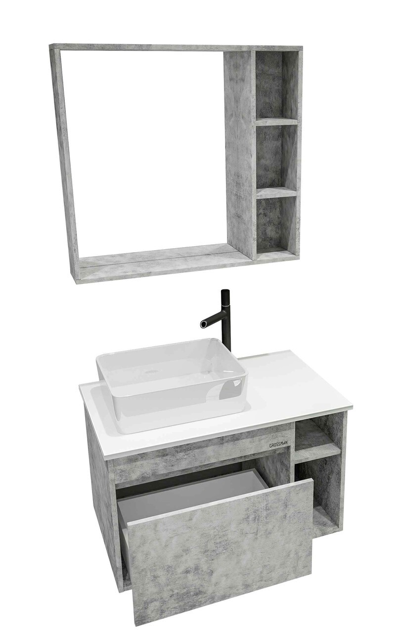 Тумба подвесная со столешницей Grossman Фалькон 80 см 108005 (раковина в комплекте) бетон