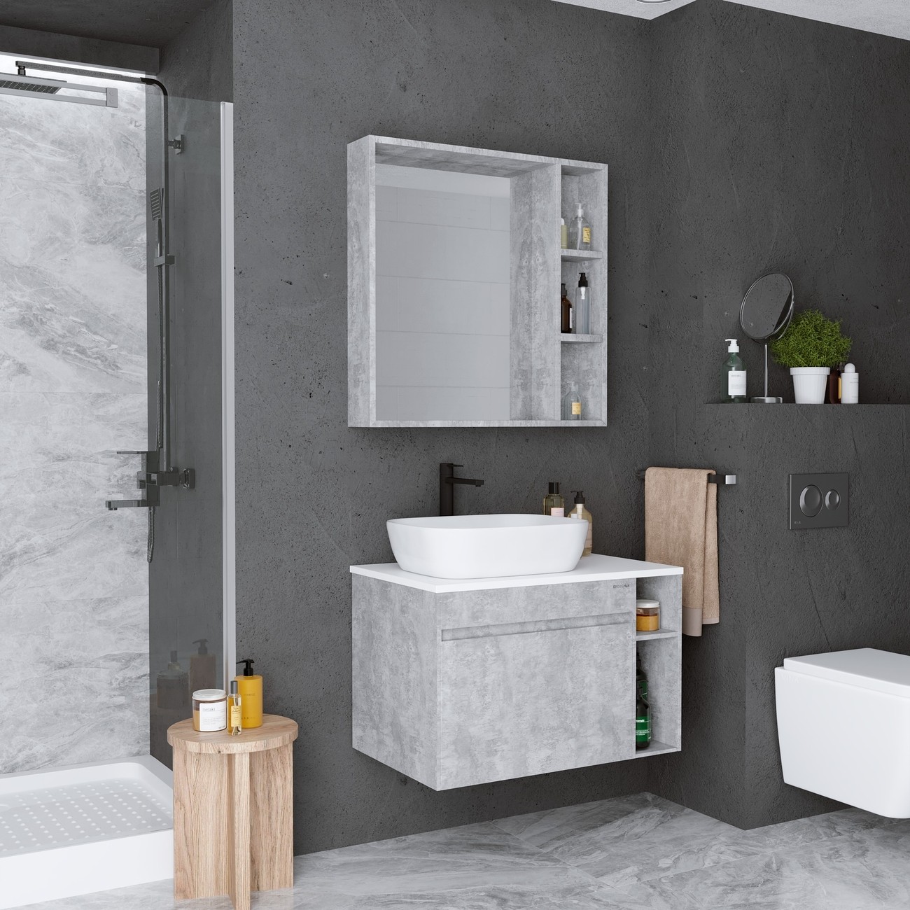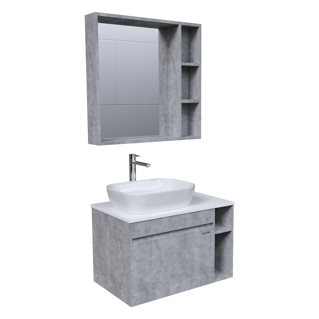 Тумба подвесная со столешницей Grossman Фалькон 80 см с раковиной Grossman Classic GR-3016 48 см, цвет бетон.