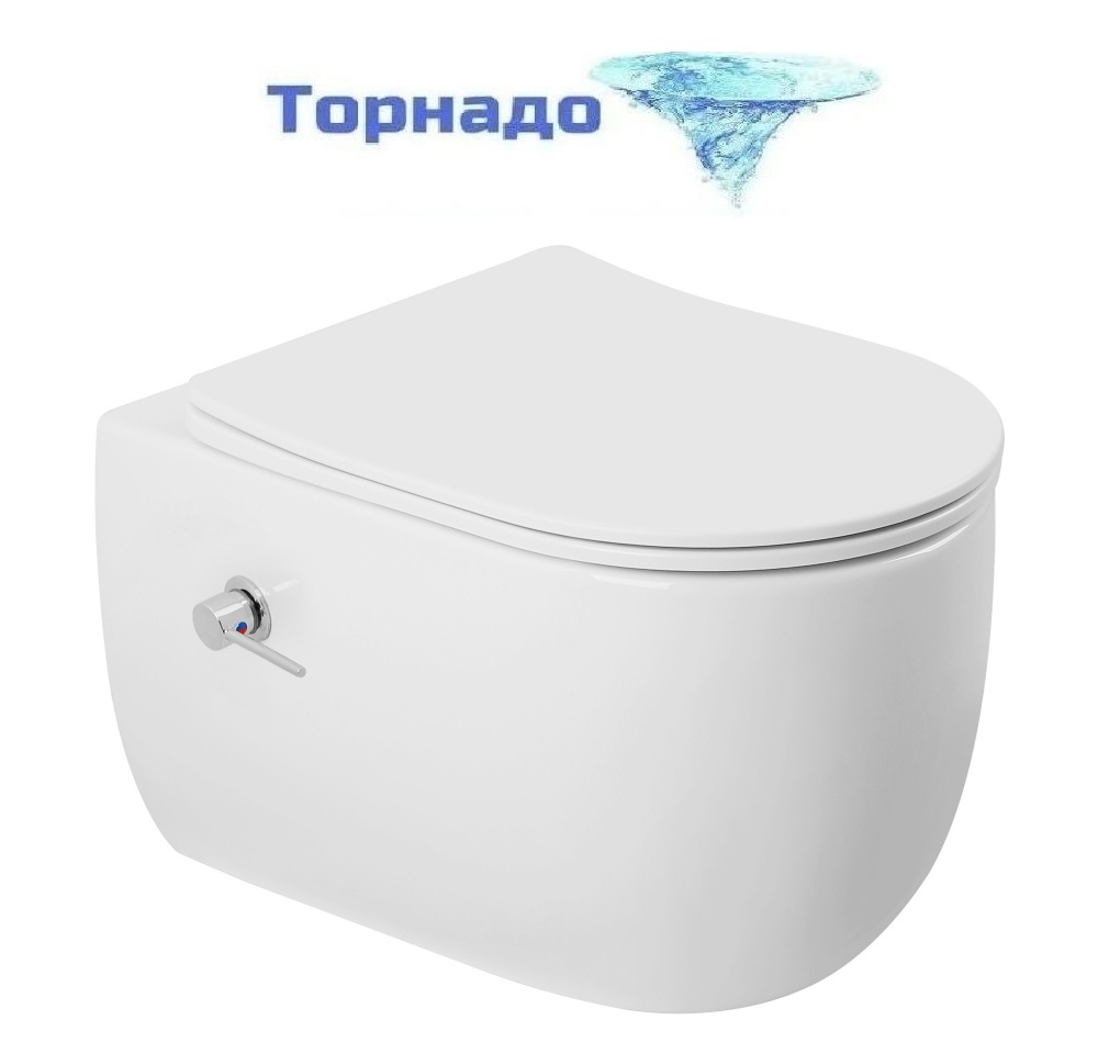 - Торнадо- это инновационная технология смыва, при которой вода подается по кругу чаши, создавая мощный и равномерный поток, тщательно очищающий каждый сантиметр чаши унитаза, не оставляя грязи ни единого шанса.