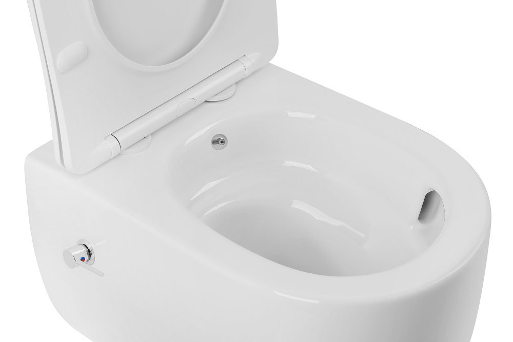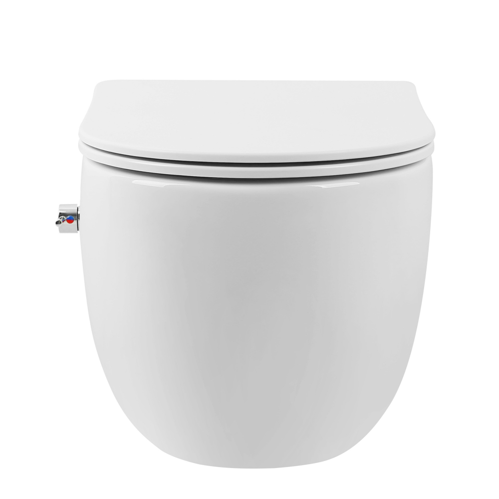 Унитаз-биде подвесной безободковый ABBER Bequem AC1104TNS, сиденье с крышкой микролифт в комплекте, с системой антивсплеск (Торнадо), цвет белый.