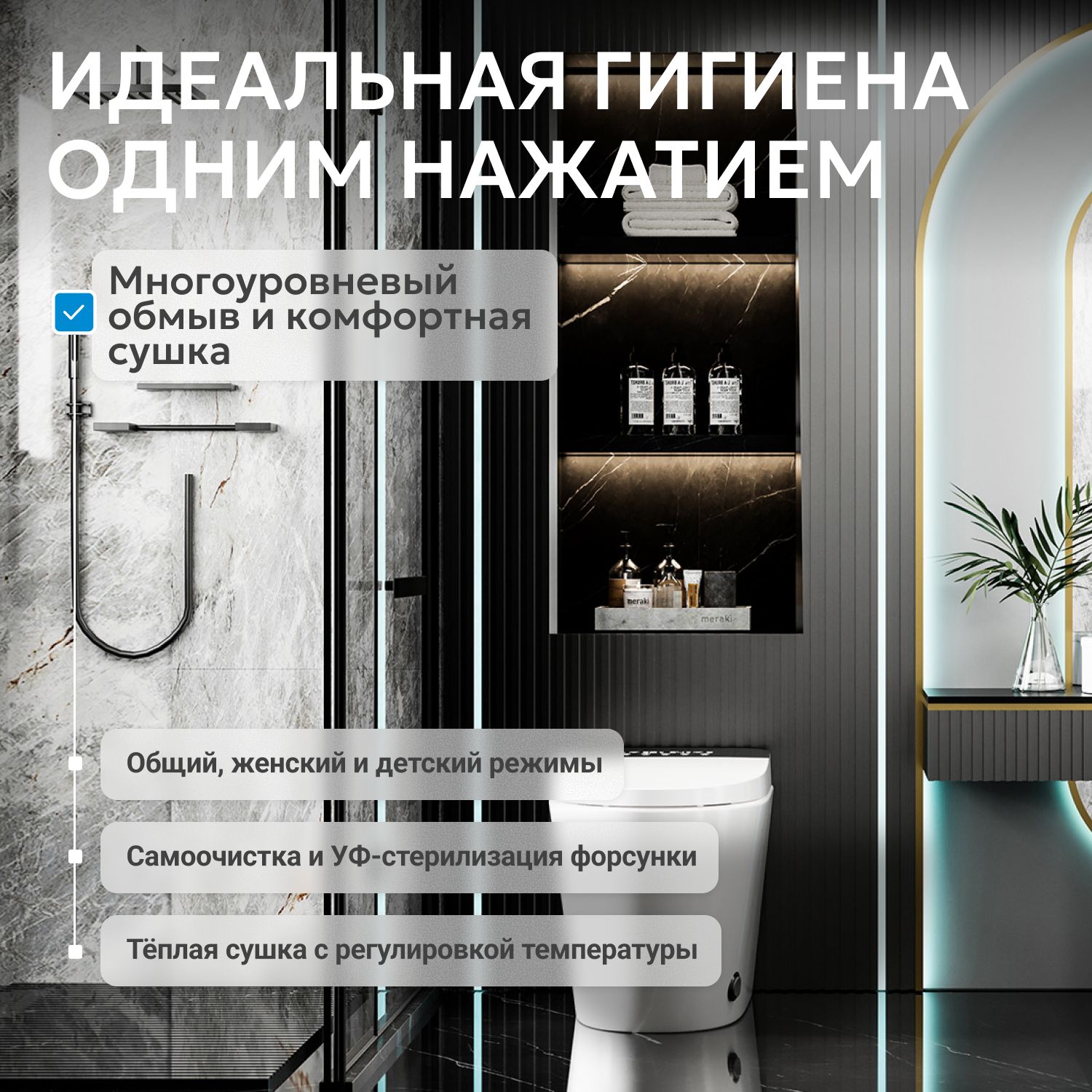 Унитаз-биде приставной электронный с импульсным смывом Abber Bequem AC1116S с крышкой микролифт