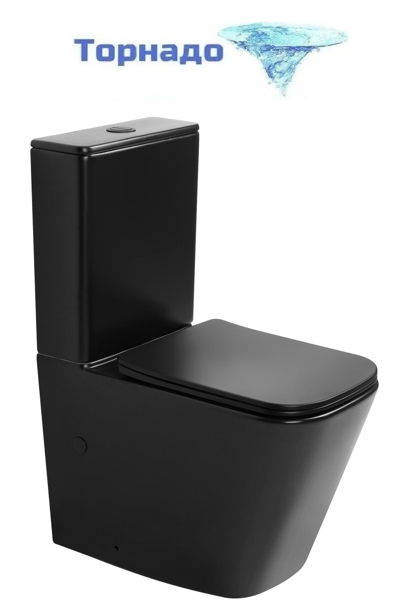 Унитаз-компакт безободковый Abber Rechteck AC1210TMB (смыв торнадо) с тонкой крышкой микролифт, чёрный матовый