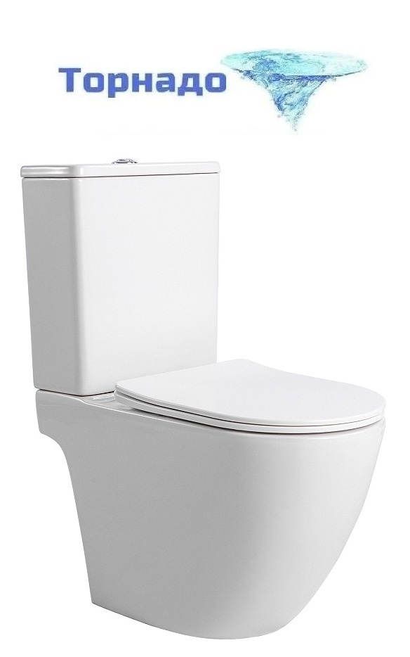 Унитаз-компакт безободковый Azario Levita AZ-2903T с тонким быстросъемным сиденьем микролифт (система смыва Торнадо)