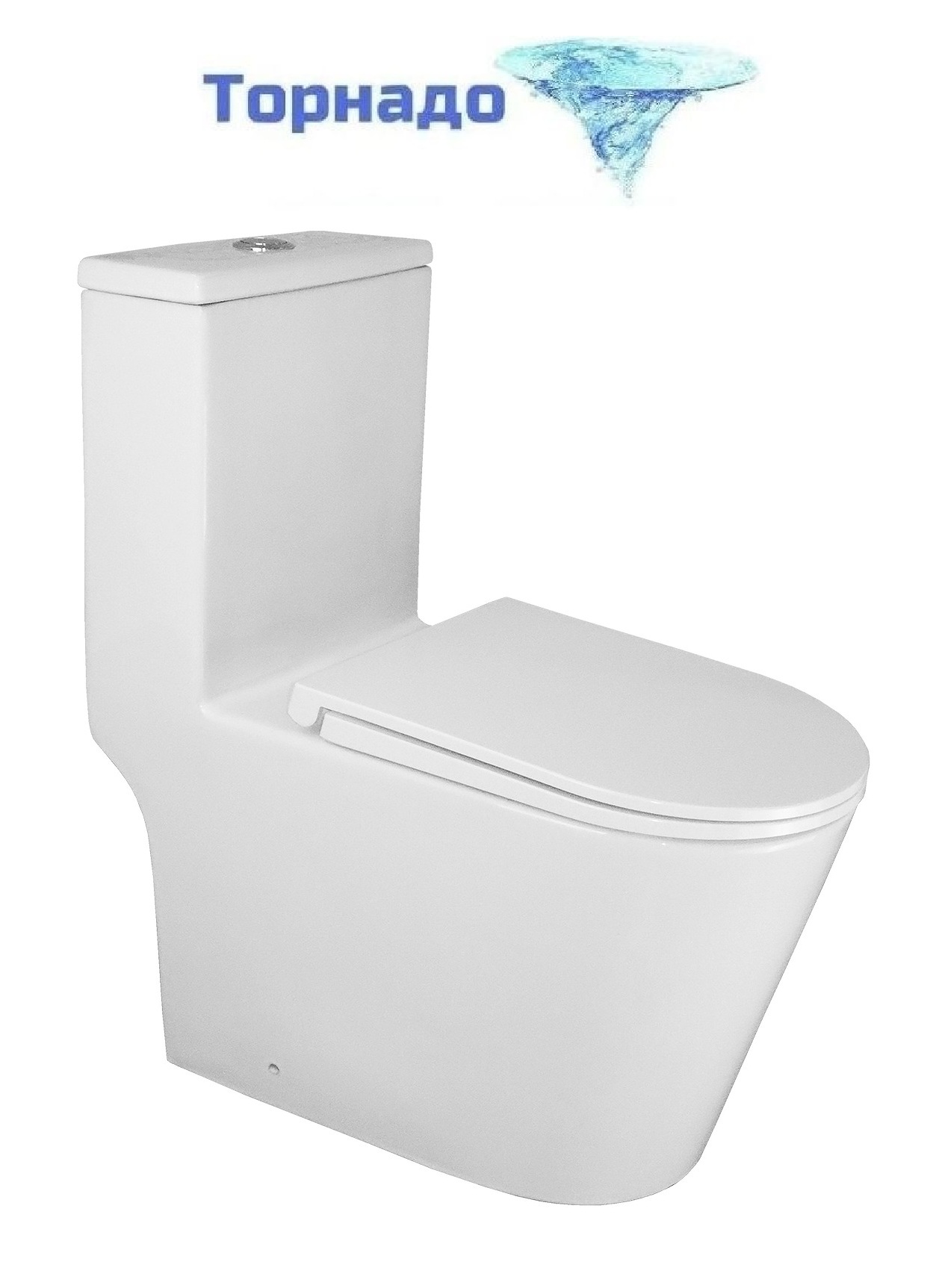 Унитаз-моноблок безободковый Azario Scala AZ-8101 с тонкой крышкой микролифт (система смыва торнадо)