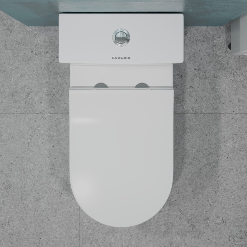 Унитаз-моноблок безободковый EvaGold EG050011, круговой слив, 2 режима смыва воды, сиденье с тонкой крышкой микролифт, цвет белый.
