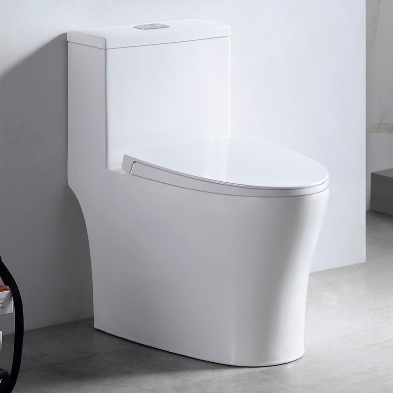 Унитаз-моноблок безободковый EvaGold EG050023, каскадный слив, 2 режима смыва воды, сиденье с тонкой крышкой микролифт, цвет белый.