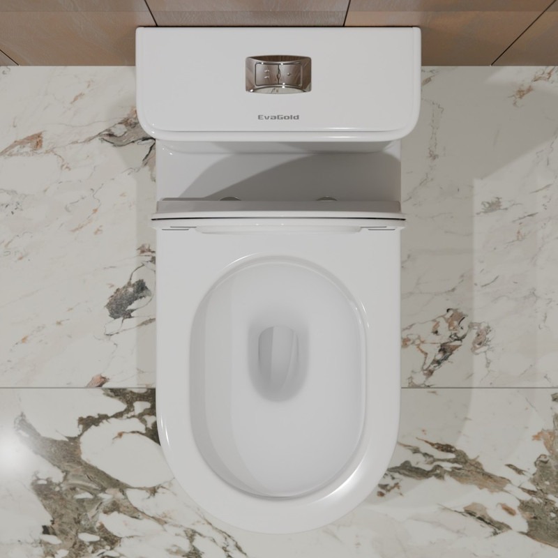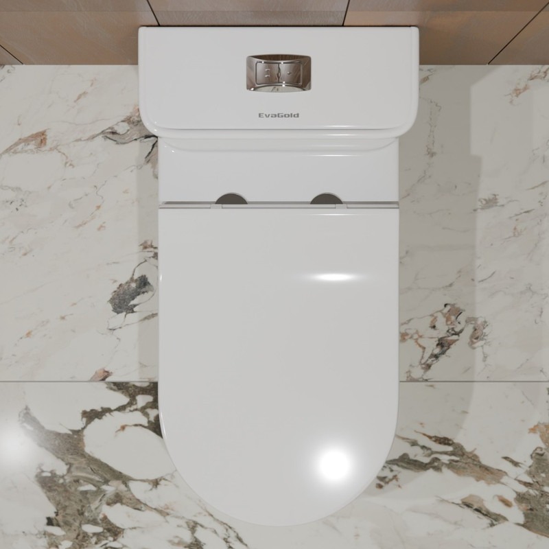 Унитаз-моноблок безободковый EvaGold EG050033, круговой слив, 2 режима смыва воды, сиденье с тонкой крышкой микролифт, цвет белый.