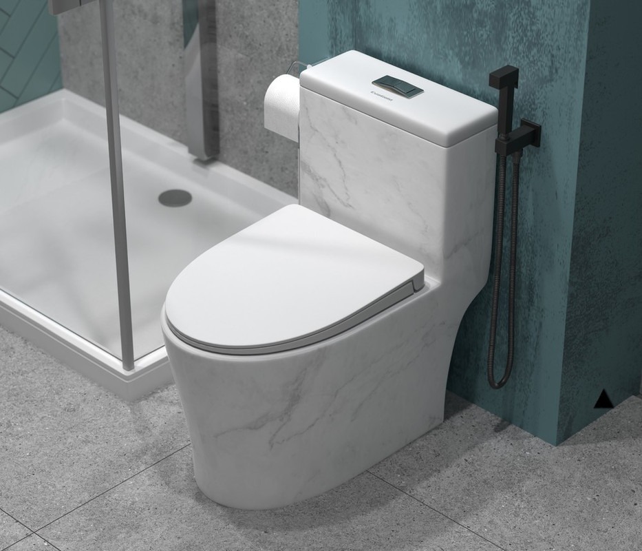 Декор "Мрамор". Унитаз - монолит (моноблок) имеет приемущества перед унитазом-компактом в том, что у него нет соединения между унитазом и бачком, являясь одним целым изделием. Данная технология производства позволяет выполнить оригинальный дизайн изделия, исключить возможность поломки крепления бачка к унитазу, исключить течь между унитазом и бачком, упрощает установку и обслуживание изделия. В комплекте: крепление к полу, арматура двухуровнего слива, сидение с доводчиком.