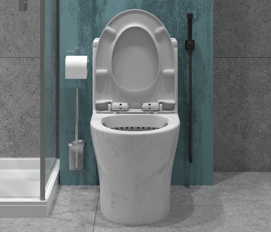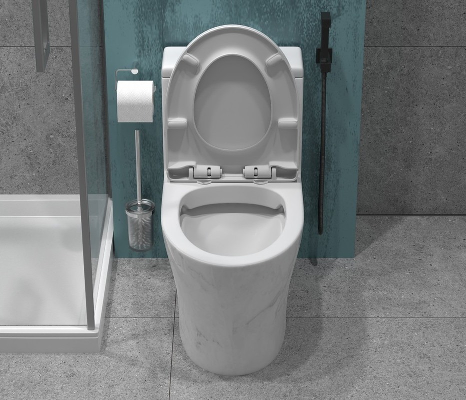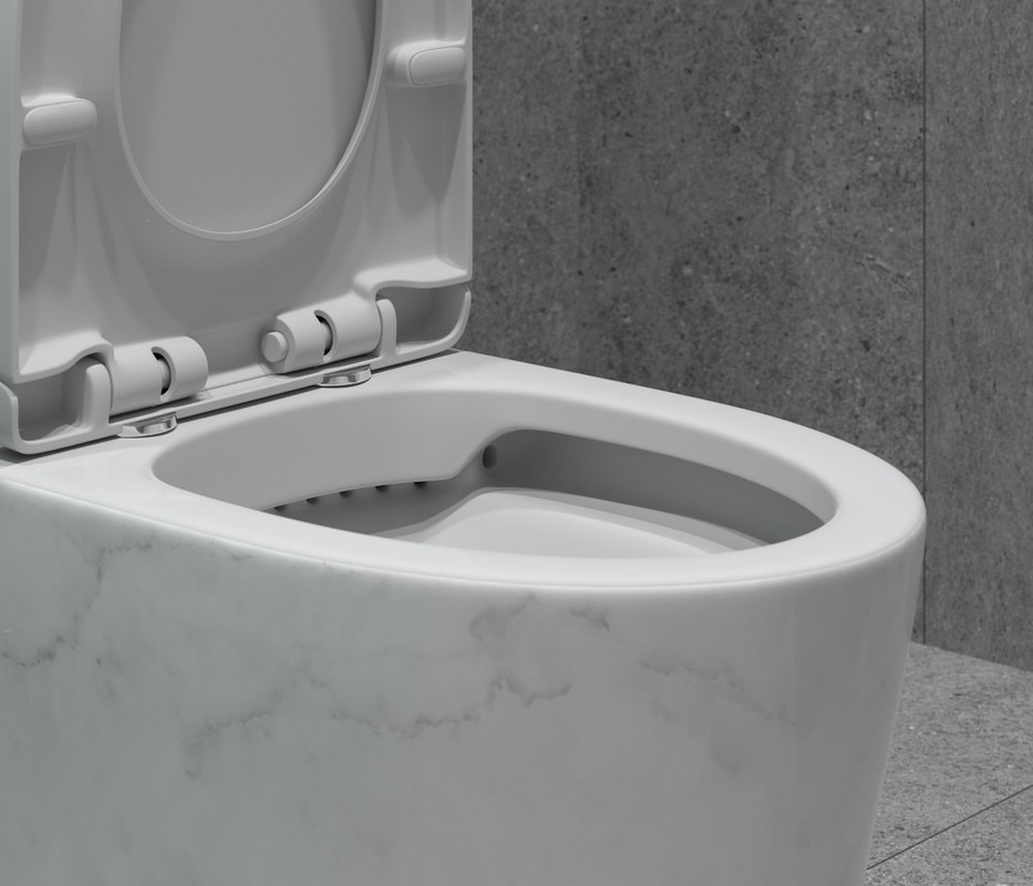 Унитаз-моноблок безободковый EvaGold EG060001 с тонкой крышкой микролифт, белый с декором