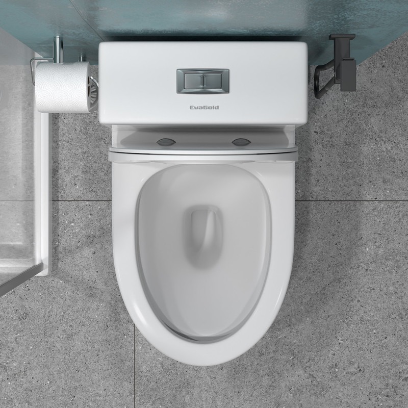 Унитаз-моноблок безободковый EvaGold EG060001, каскадный слив, 2 режима смыва воды, сиденье с тонкой крышкой микролифт, цвет белый с декором.